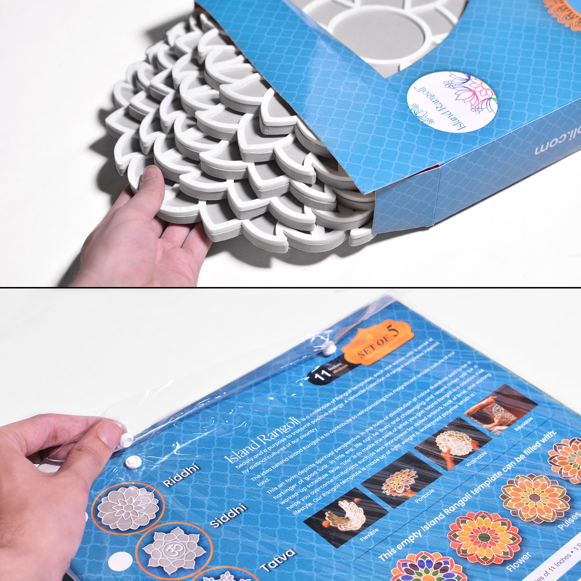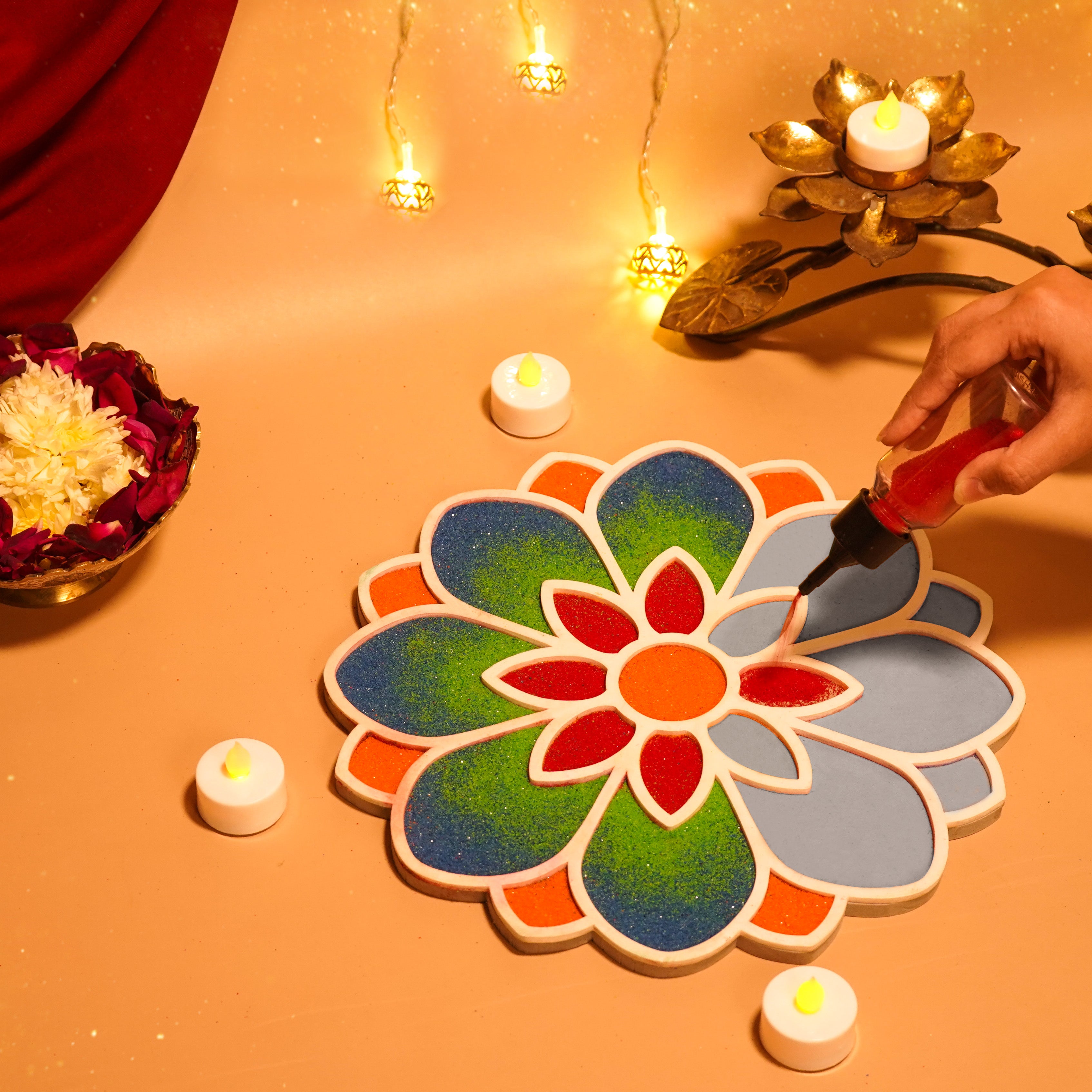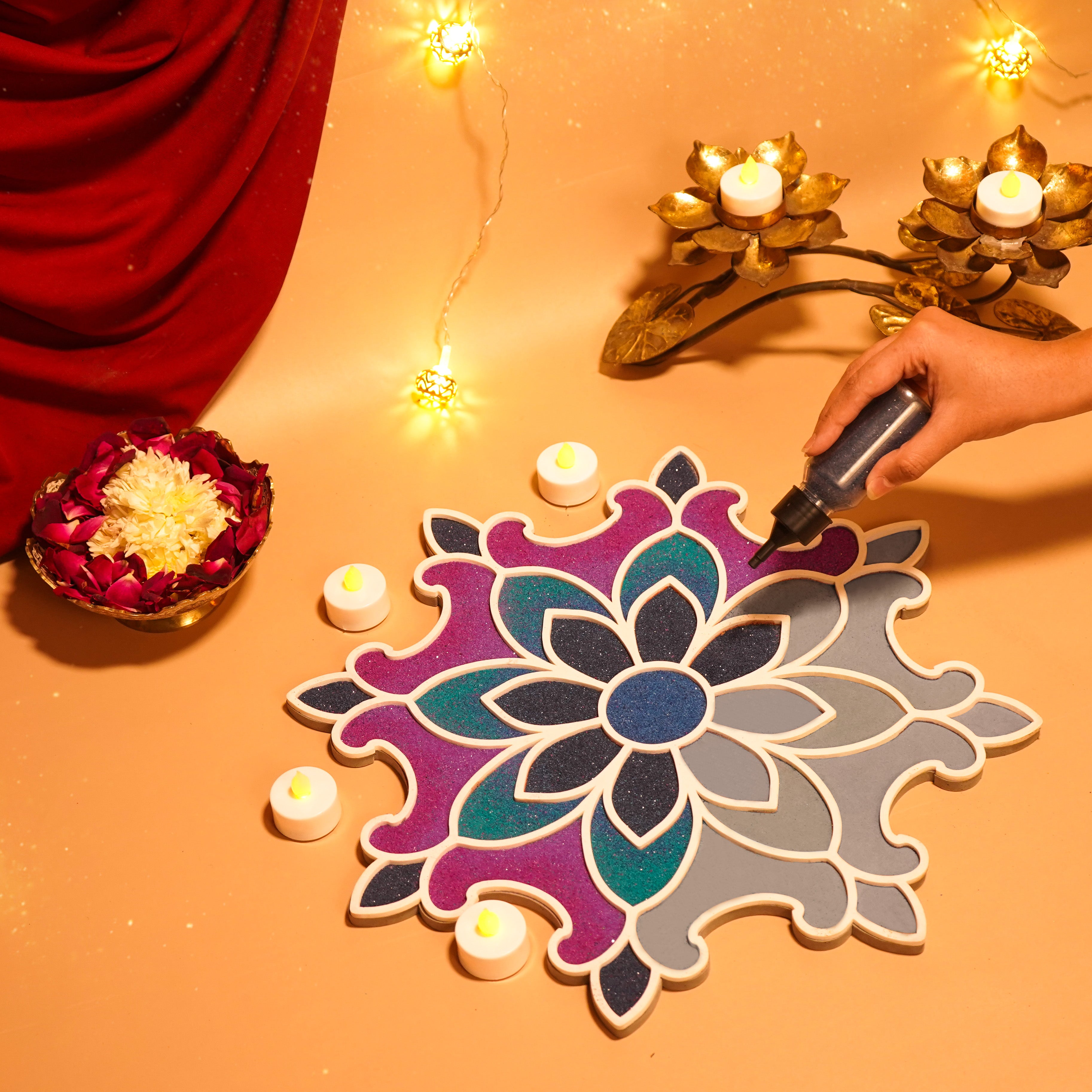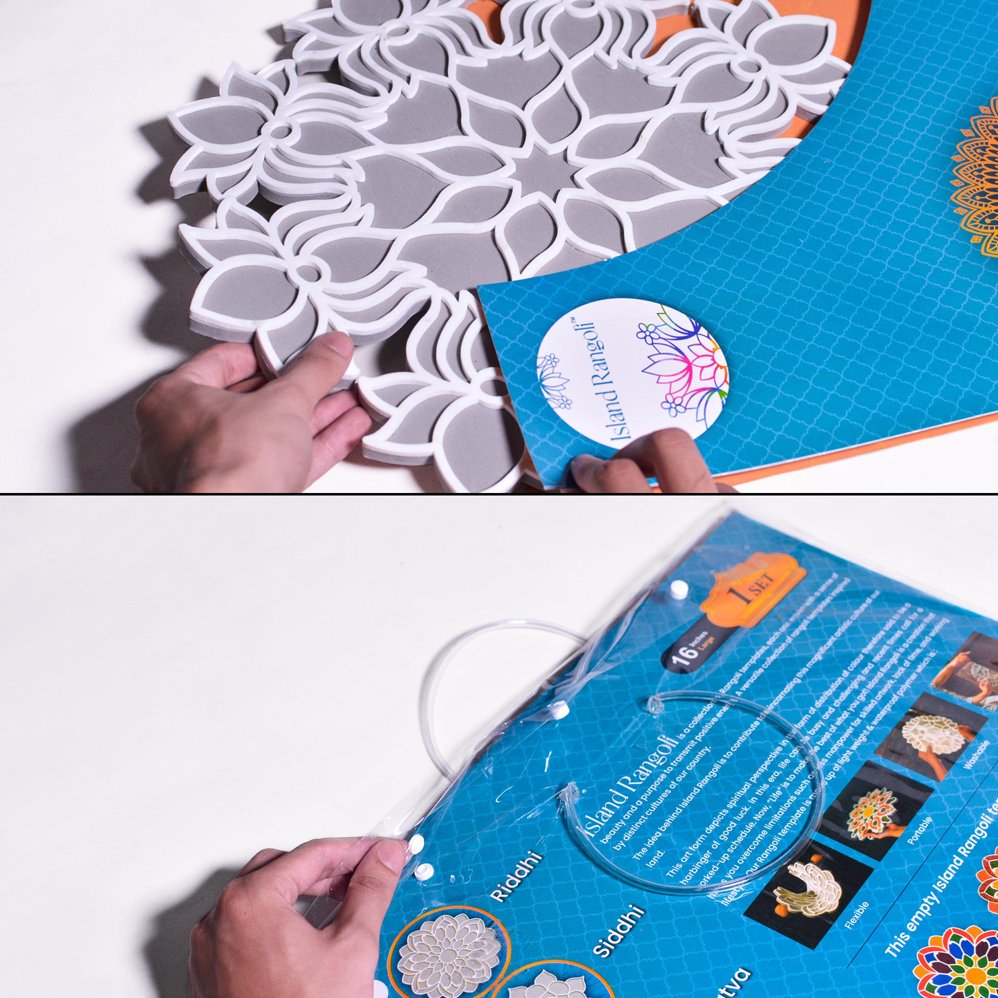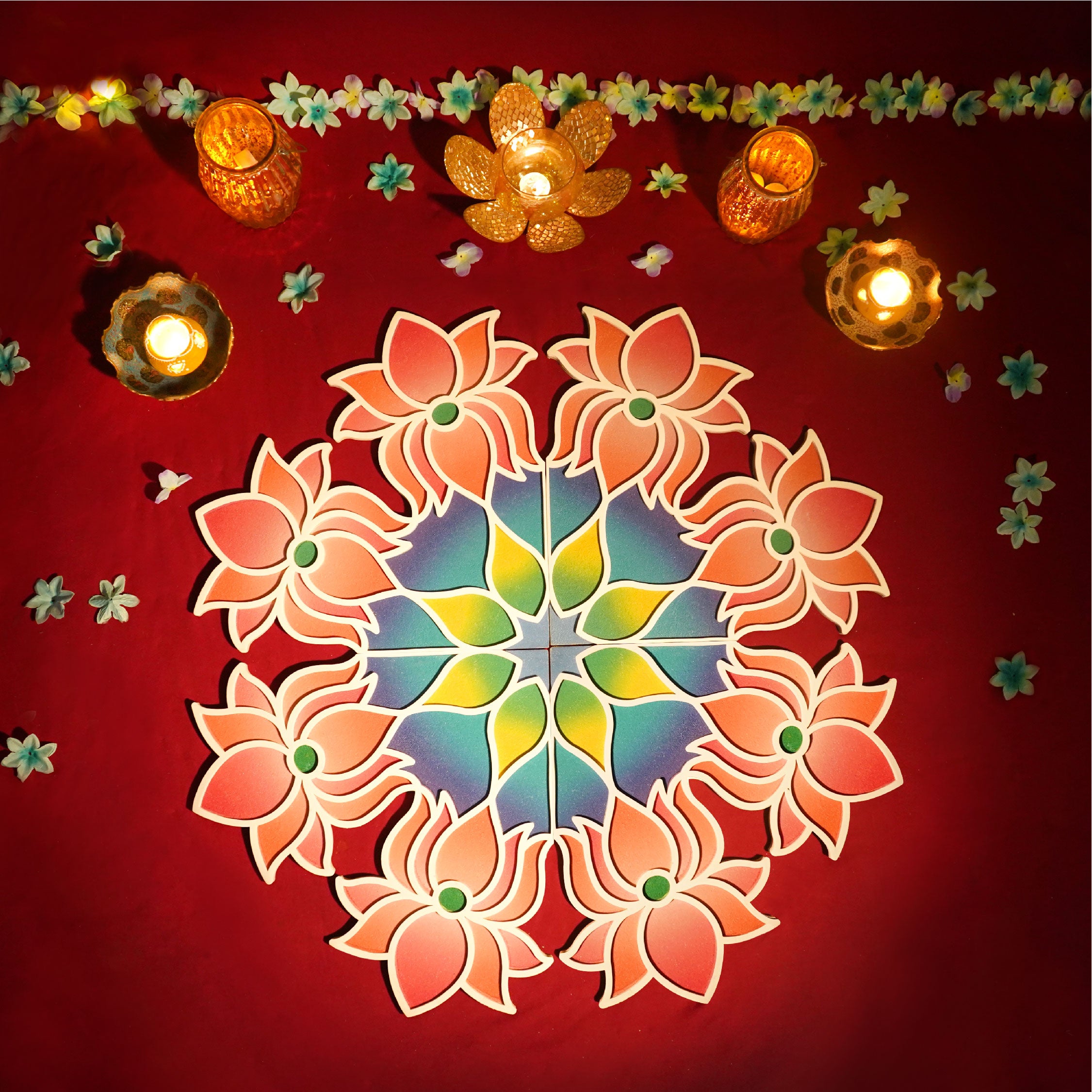 Portable: The template allows the everyone to fill rangoli in their comfort space and then place it on your desired space.Lightweight & Easy to clean:Island Rangoli can be placed anywhere and on any surface like floor, furniture, water, walls and garden. It can be washed easily OR you can dry dust Using Spade spoon` and brush to remove previous fillings and make it ready for next use and Storage.Easy to make: Island Rangolis allows you in making a hassle and mess-free rangoli. Make it wherever and whenever you want in your comfort zone, without having to flesh out countless hours.Placements: Place the template at the desired space of your home/office such floor, garden, table top, stairs etc. Decorate with your Preferential ingredients like Colors, Pulses, Flowers, acrylic colours or SpicesCan be Floated: Island Rangoli is first kind of rangoli in the world that can be floated on water which eventually enhances the beautification of this art. Adorn your space with this rangoli and seek compliments from your loved ones