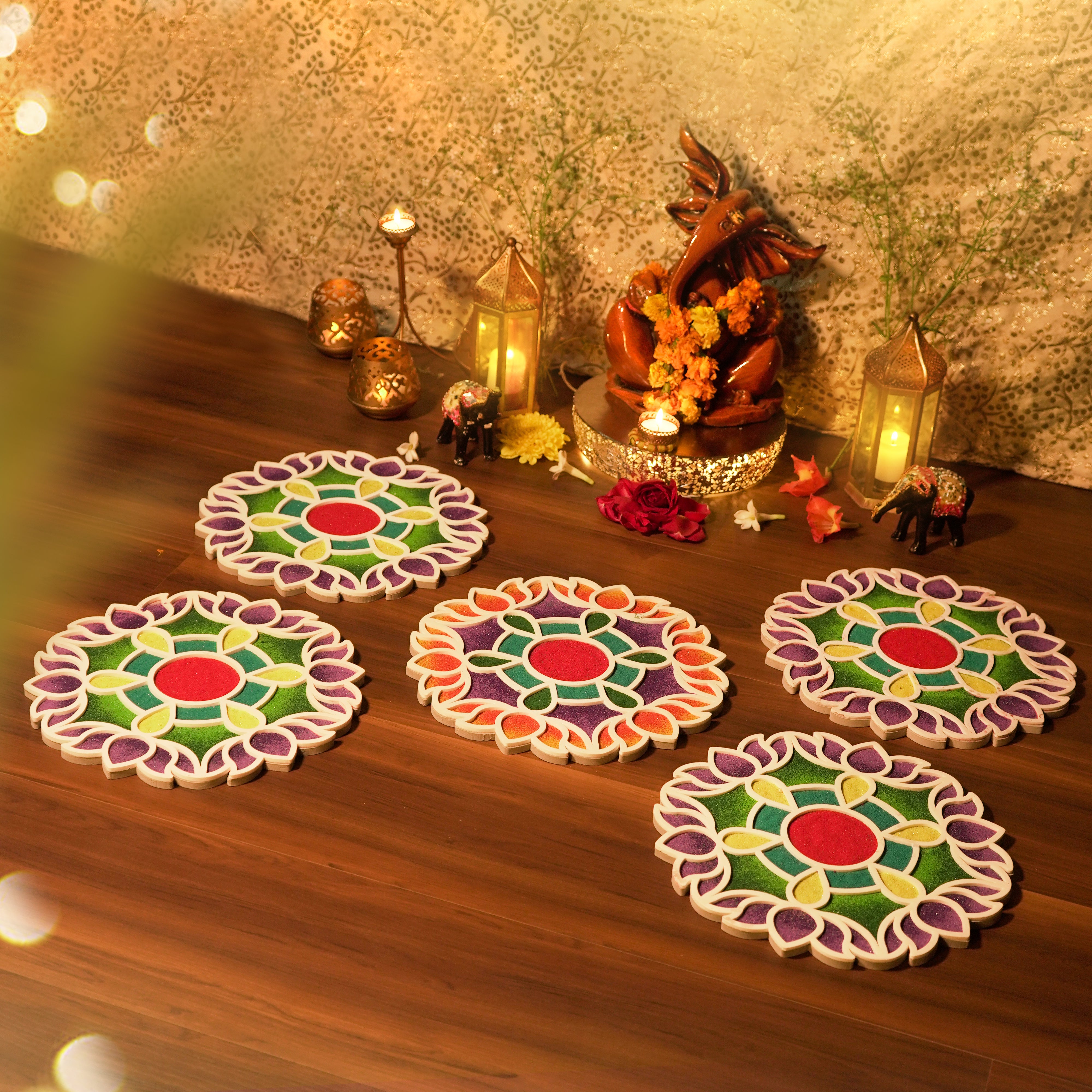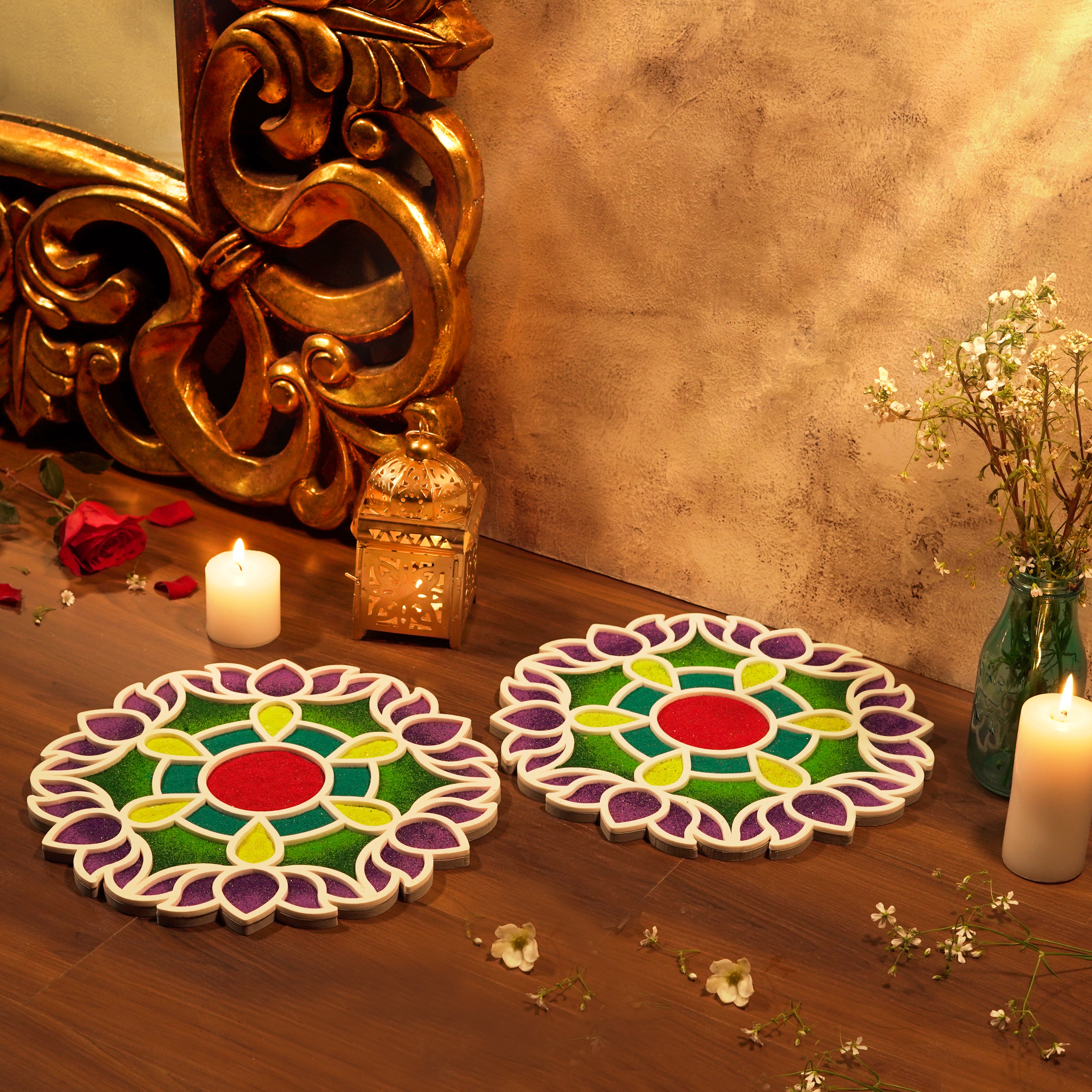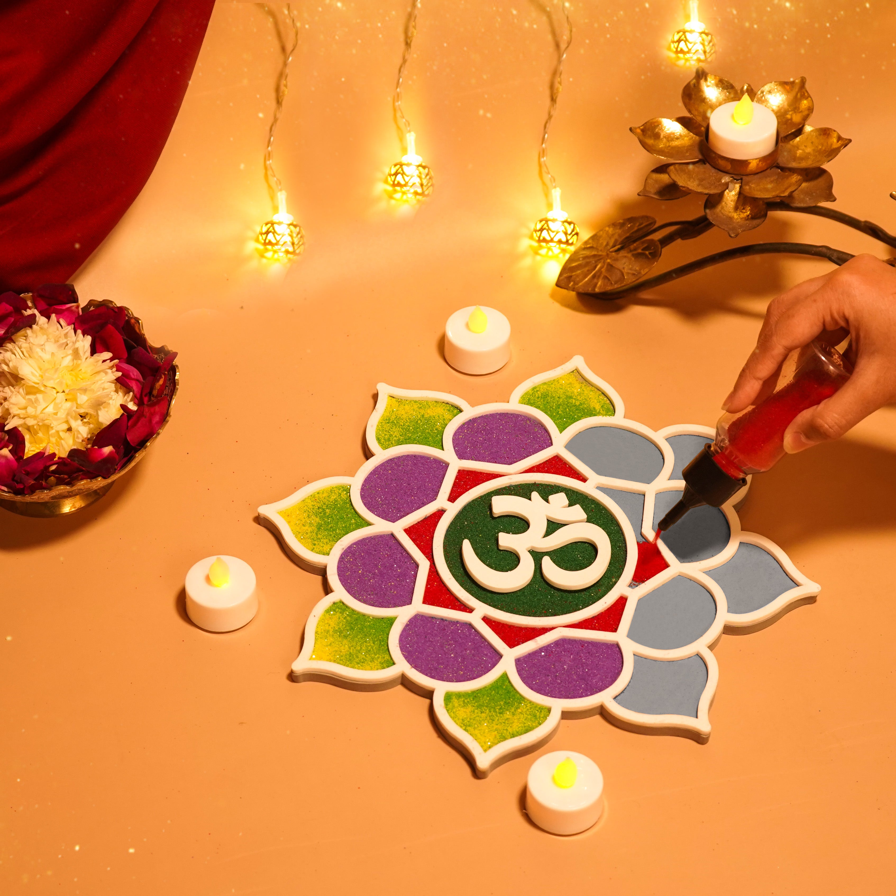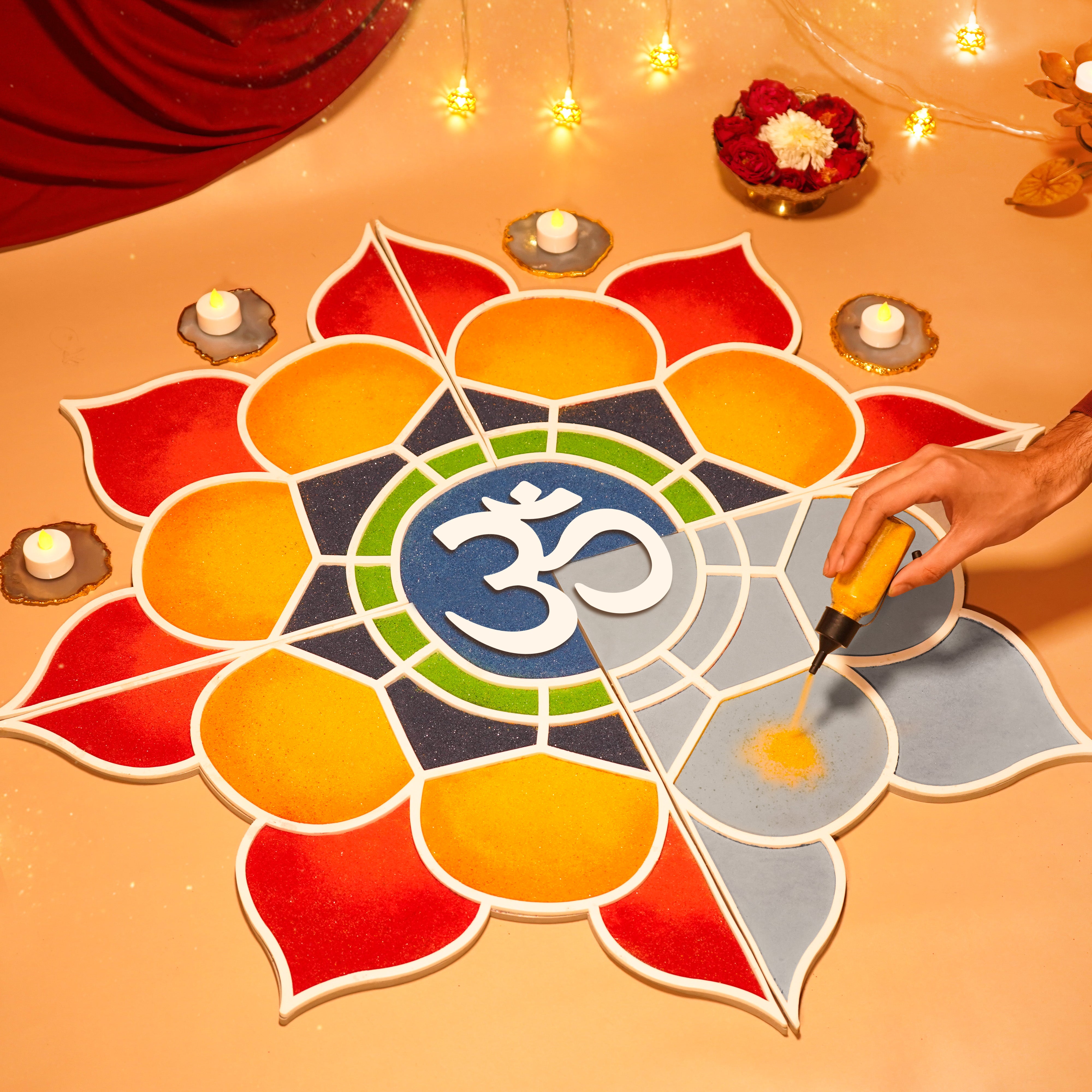 Portable: The template allows the everyone to fill rangoli in their comfort space and then place it on your desired space.Lightweight & Easy to clean:Island Rangoli can be placed anywhere and on any surface like floor, furniture, water, walls and garden. It can be washed easily OR you can dry dust Using Spade spoon` and brush to remove previous fillings and make it ready for next use and Storage.Easy to make: Island Rangolis allows you in making a hassle and mess-free rangoli. Make it wherever and whenever you want in your comfort zone, without having to flesh out countless hours.Placements: Place the template at the desired space of your home/office such floor, garden, table top, stairs etc. Decorate with your Preferential ingredients like Colors, Pulses, Flowers, acrylic colours or SpicesCan be Floated: Island Rangoli is first kind of rangoli in the world that can be floated on water which eventually enhances the beautification of this art. Adorn your space with this rangoli and seek compliments from your loved ones