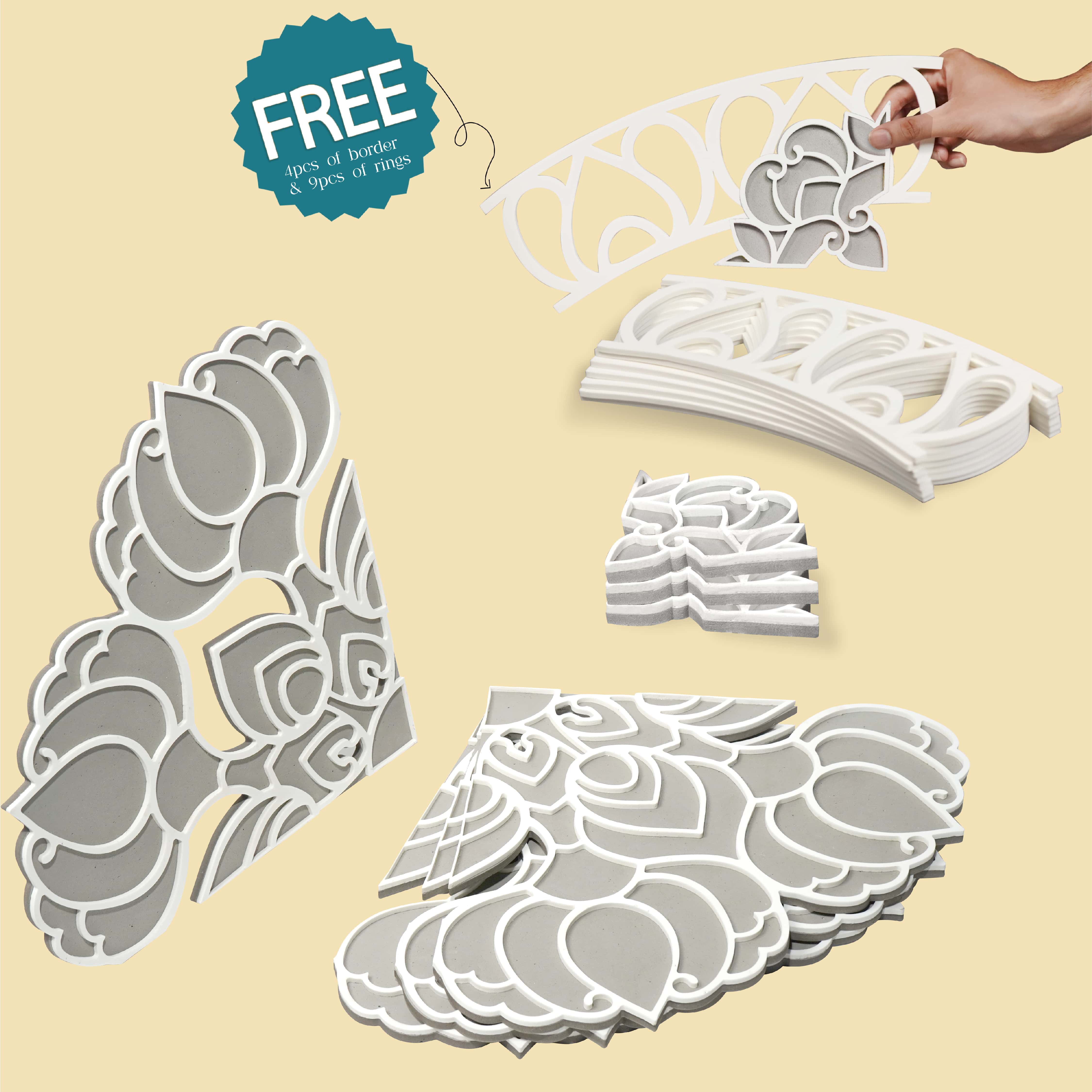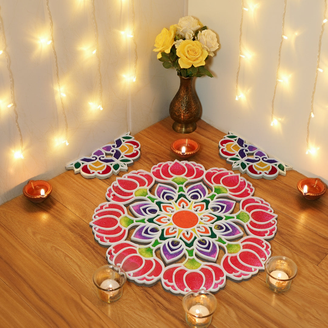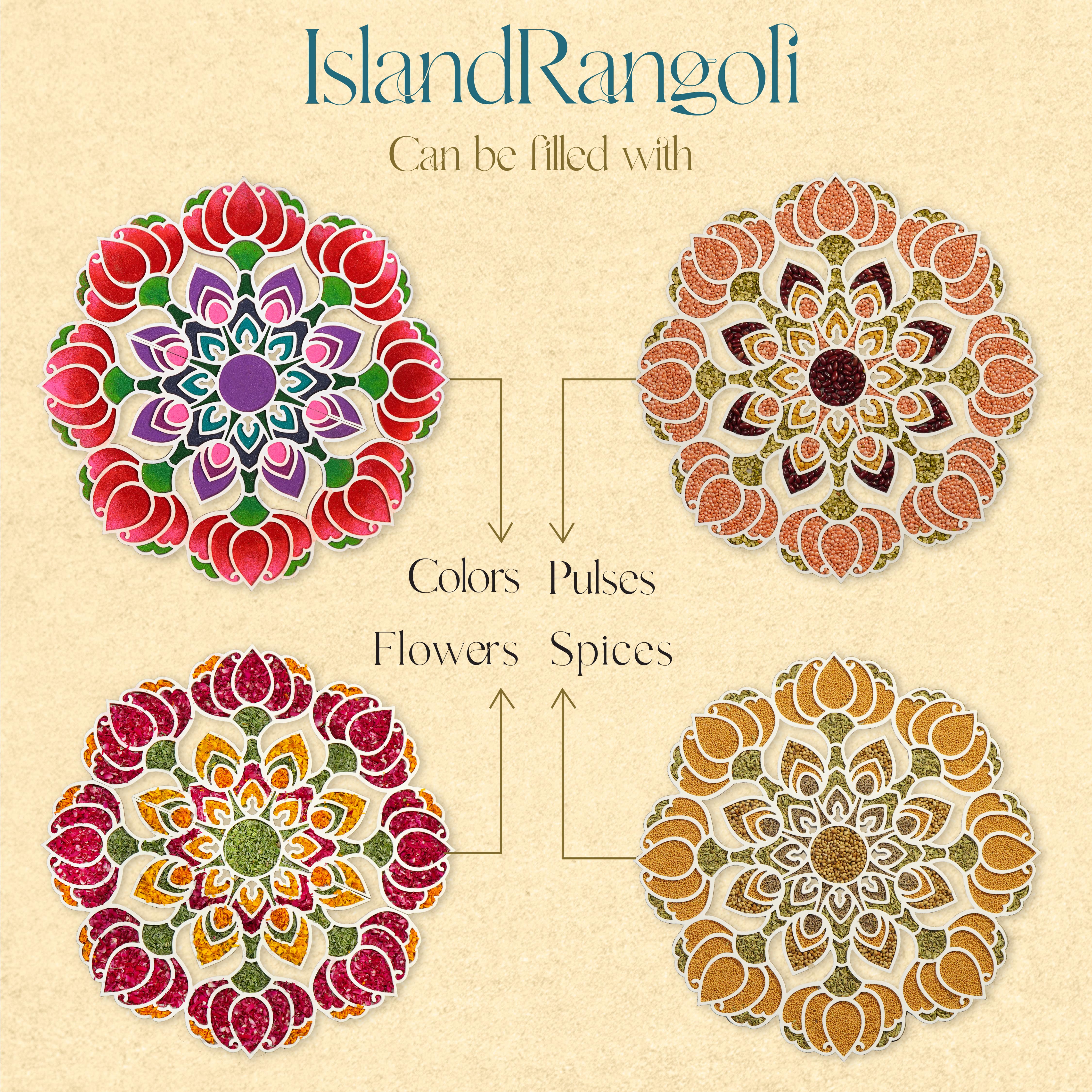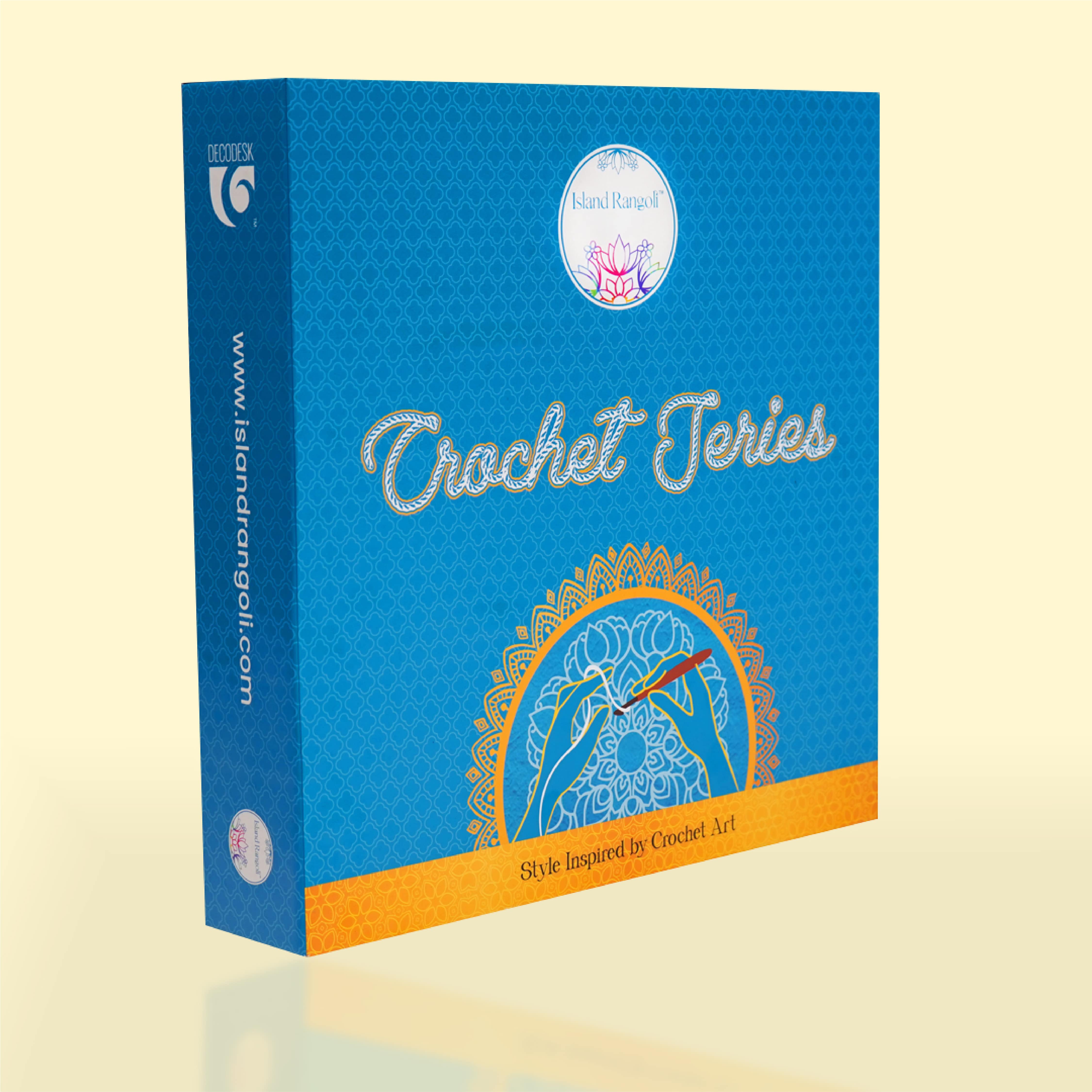 Island Rangoli's artistic Collection 2023 Easy Rangoli Template style is inspired by CROCHET ART. Just as knitting weaves threads into intricate patterns crochet creates stunning loops, this collection embodies the essence of both crafts to bring you a symphony of colors, patterns, and creativity.