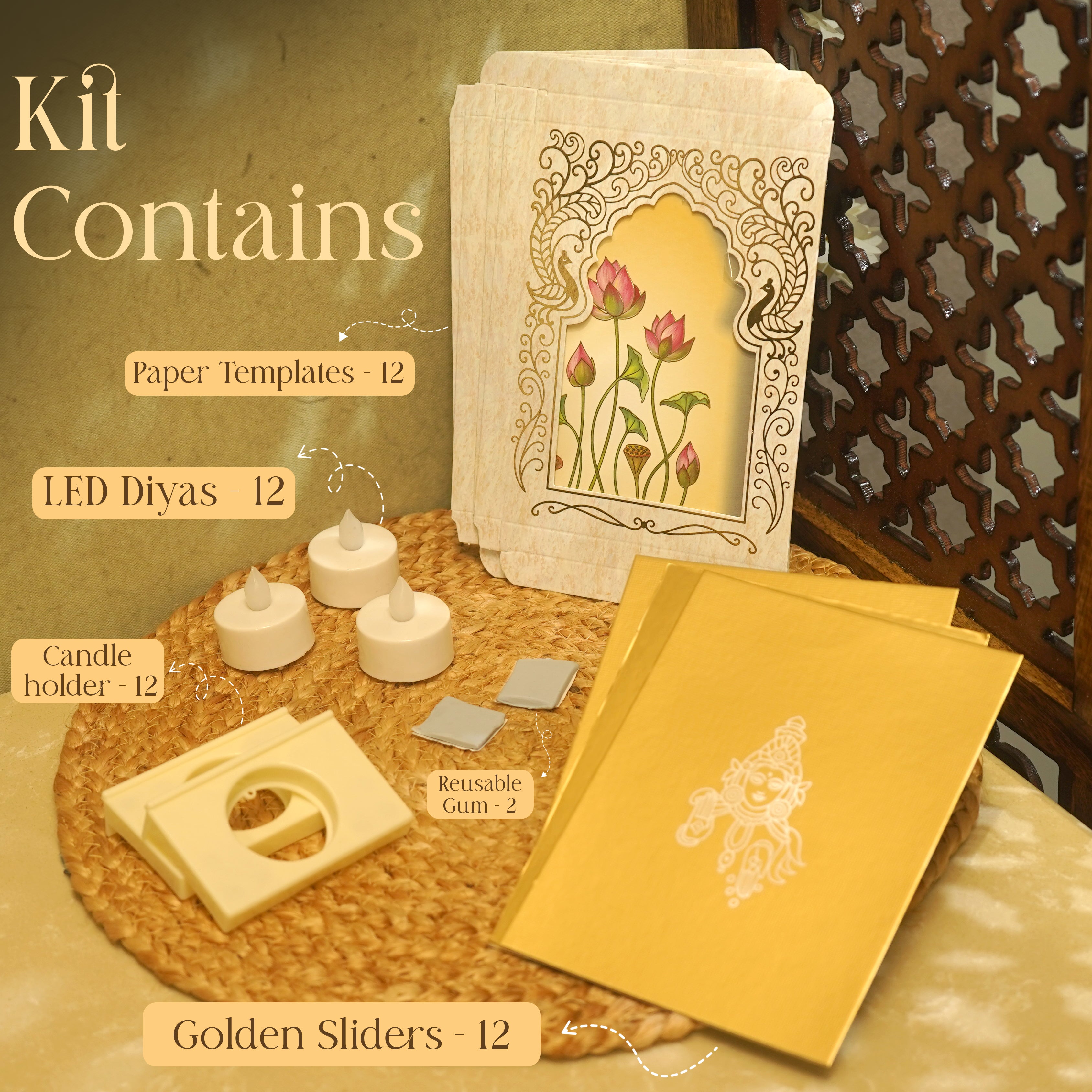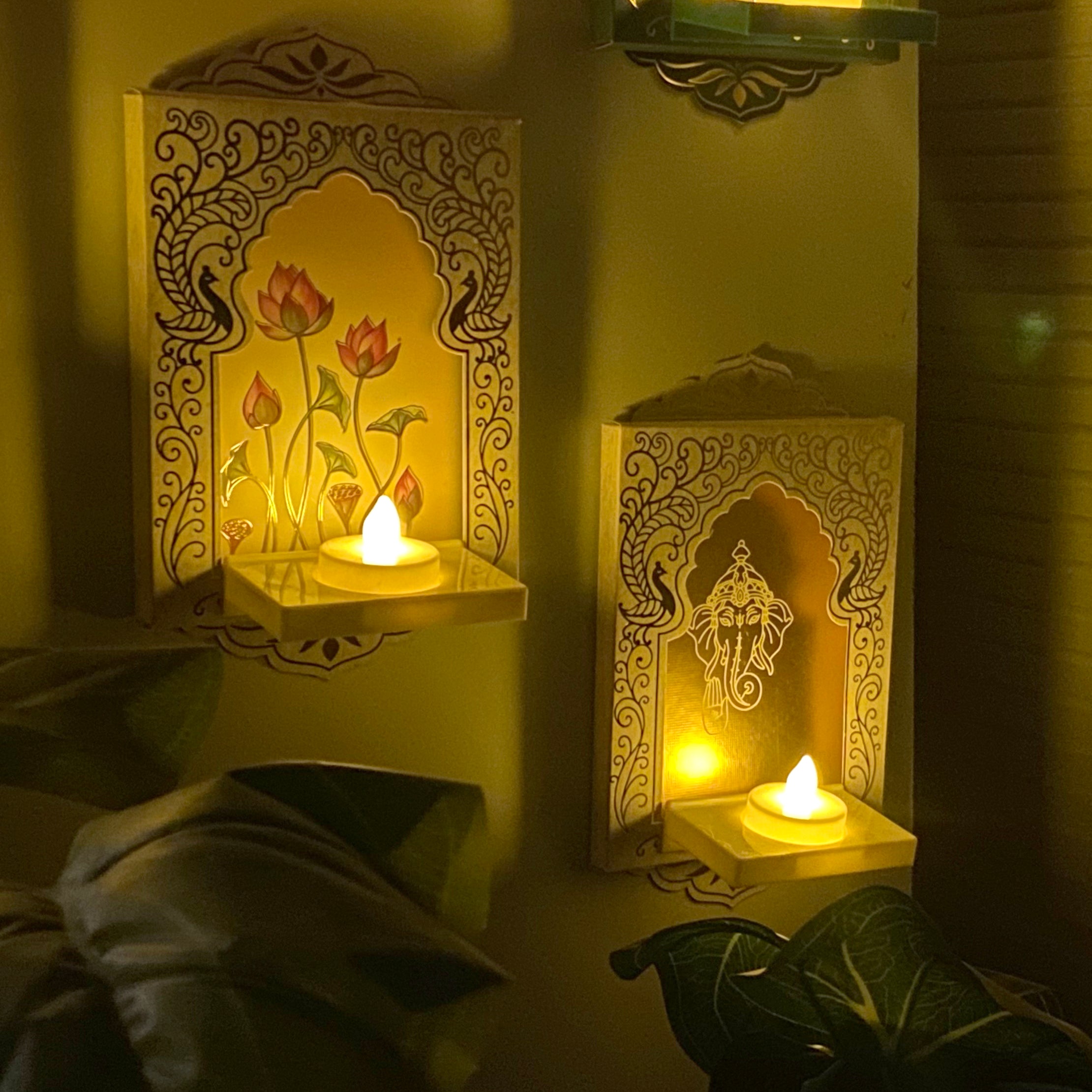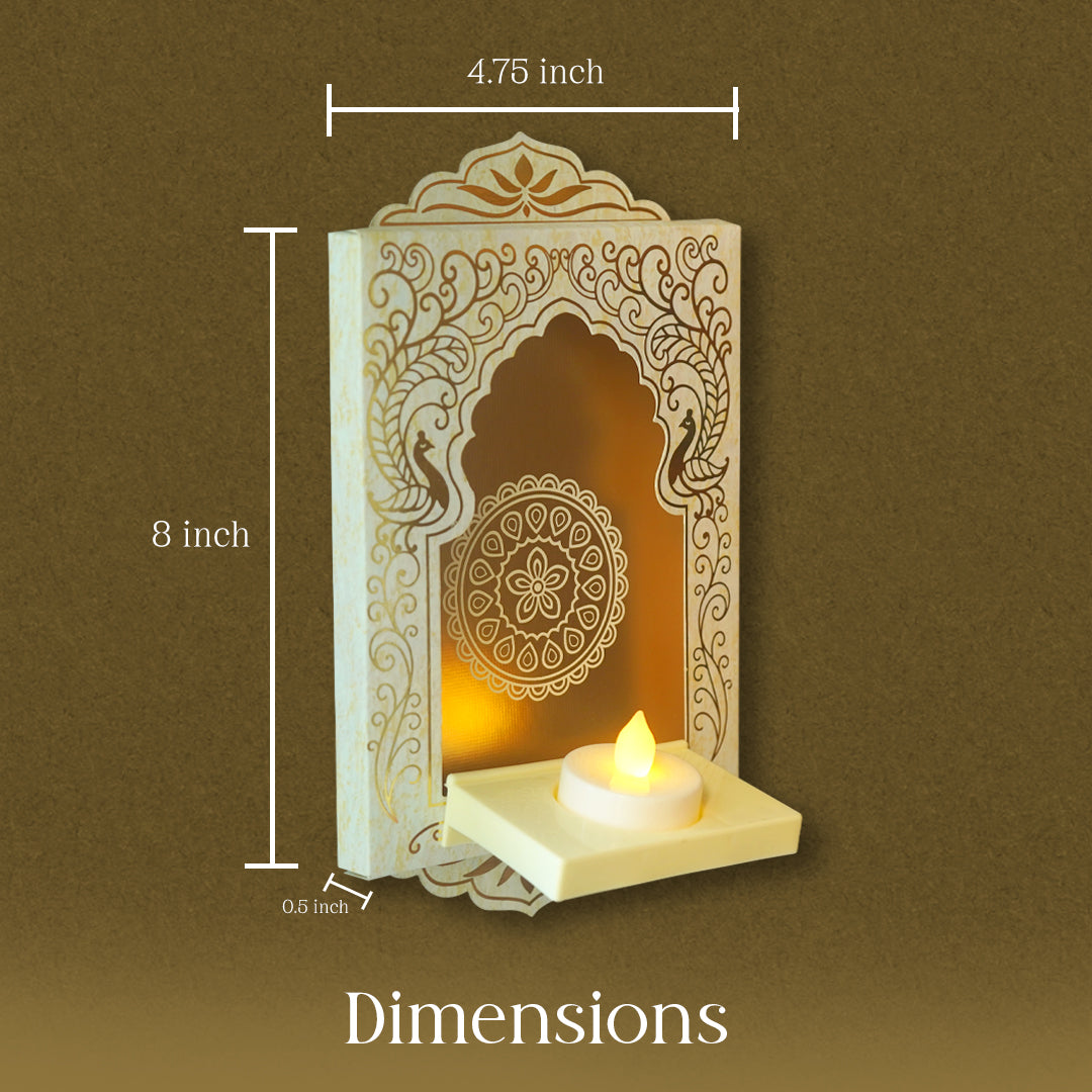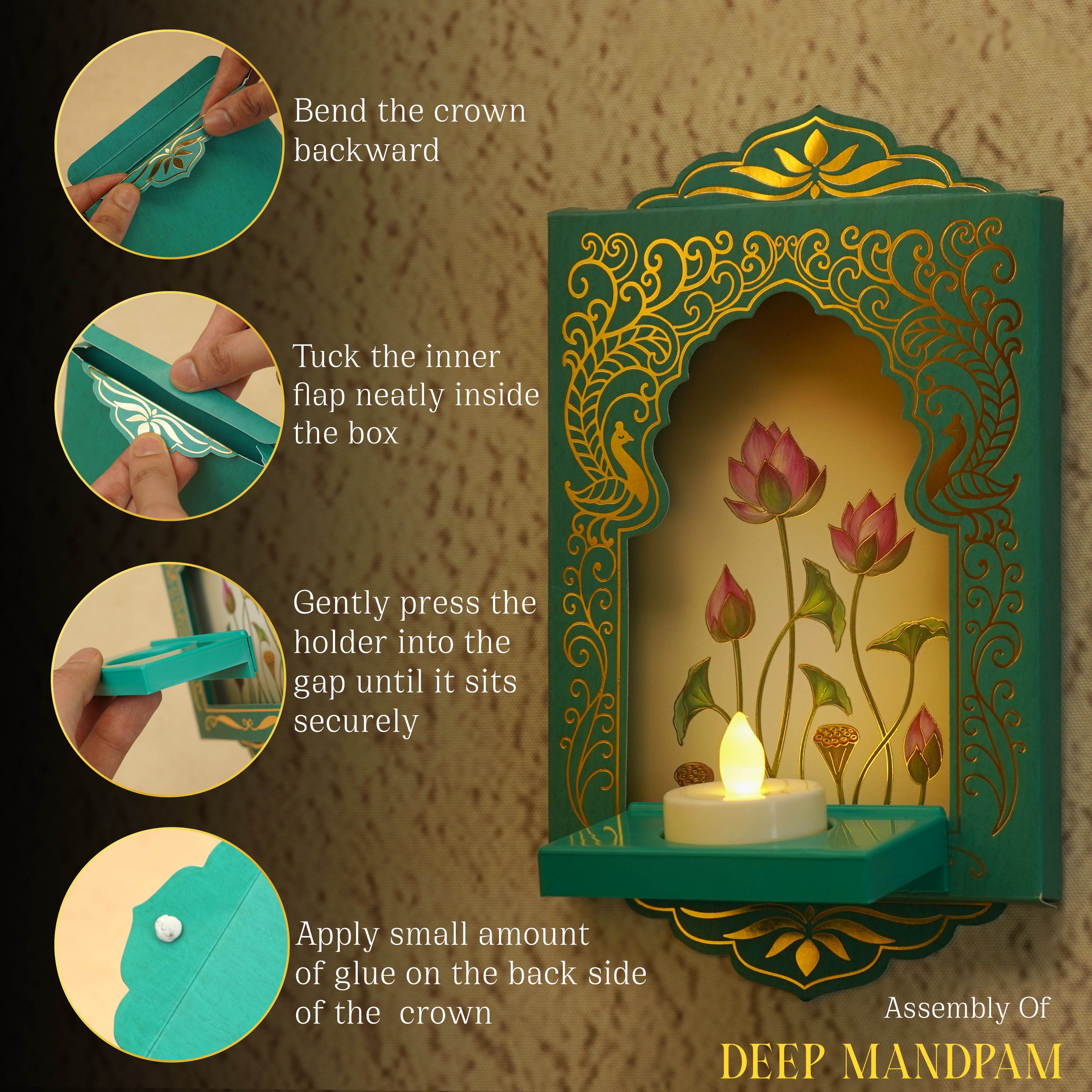 Taking the legacy forward of Deep Dwar, Introducing DEEP MANDAPAM - crafted to bring an air of vintage royalty to your space, These wall Jharokhas comes with beautiful golden sliders that lets you switch up your backdrop effortlessly for different decor moods.. This compact size jharokhas are perfect addition to your festive decor offering versatile charm for walls, door entrances, lobbies, staircases, and balconies. Affix with ease using our residue-free, reusable glue and give your walls a glow of timeless craftsmanship. Compact and thoughtfully designed, Deep Mandapam Jharokha Boxes make for the perfect gifting