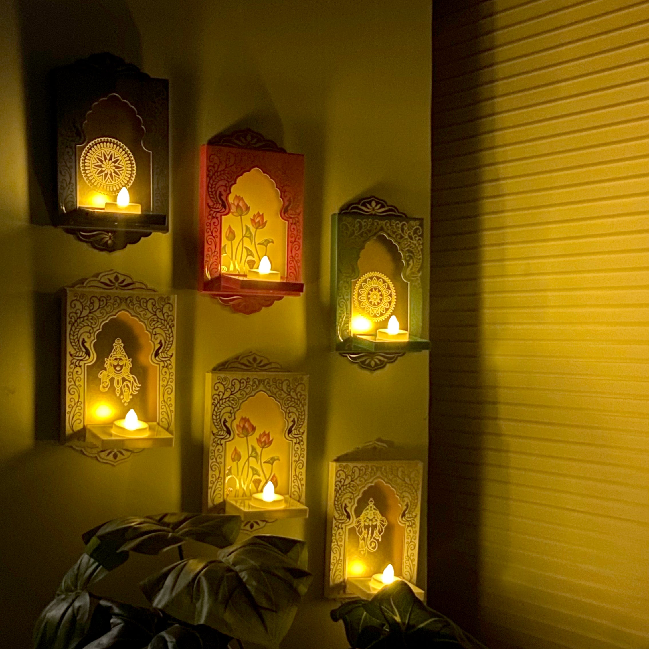 Compact and thoughtfully designed, Deep Mandapam lanterns Jharokha Boxes make for the perfect gifting choice for housewarmings, birthdays, or festive occasions. Lightweight and easy to carry, these pieces come with convenient hanging options, allowing you to adorn any wall or corner of your home with elegance and charm."