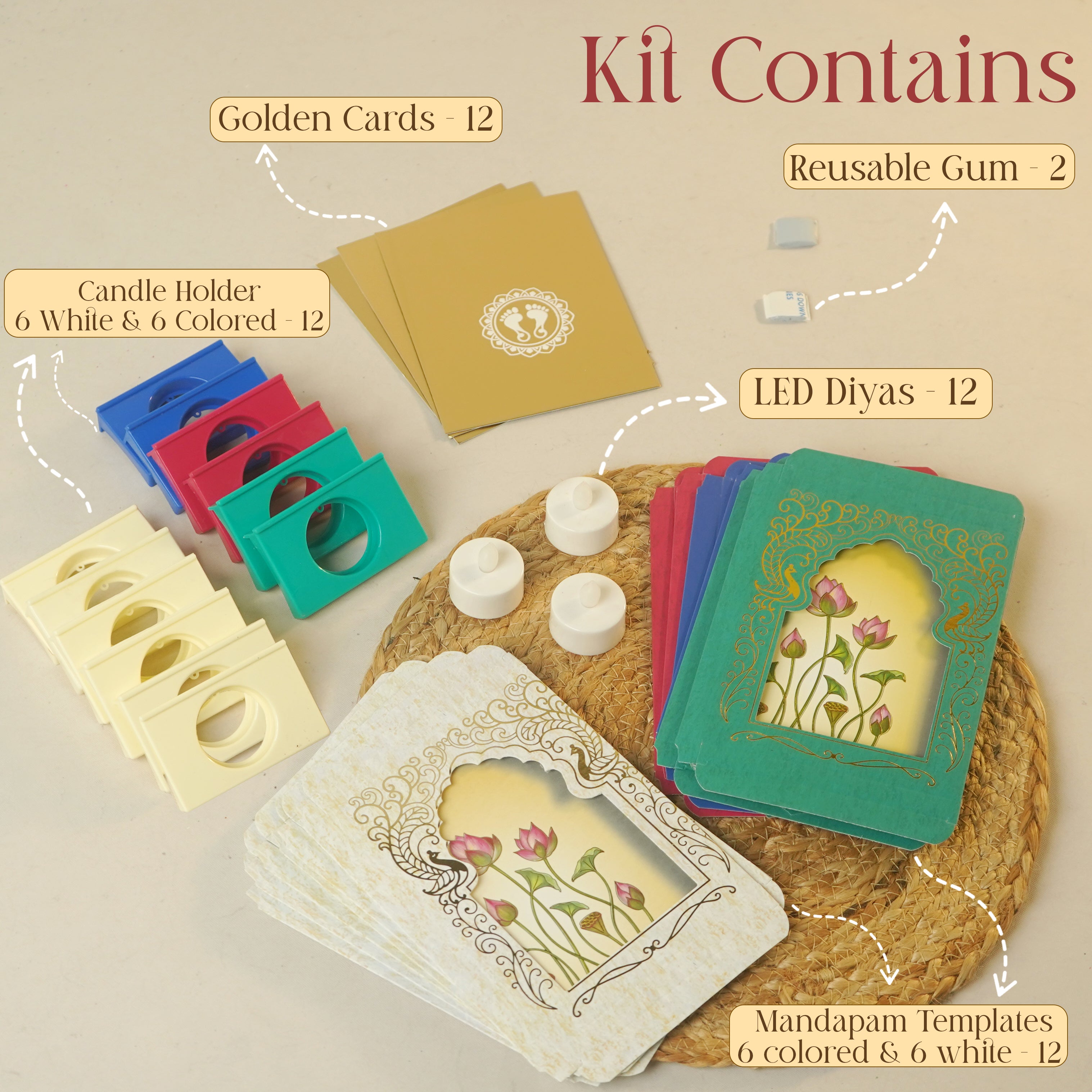 We have included golden decorative sliders that can easily slide in the box. With mandala patterns on one side and traditional Indian icons on the other, they let you switch up your backdrop effortlessly for different decor moods.Taking the legacy forward of Deep Dwar, Introducing DEEP MANDAPAM-crafted to bring an air of vintage royalty to your space, These wall Jharokhas come in delicate Indian designs and vivid colours. With a compact size and reasonable price, these are the perfect addition to your wall decor offering versatile charm for walls, door entrances, lobbies, staircases, and balconies. Affix with ease using our residue-free, reusable glue and give your walls a glow of timeless craftsmanship.
