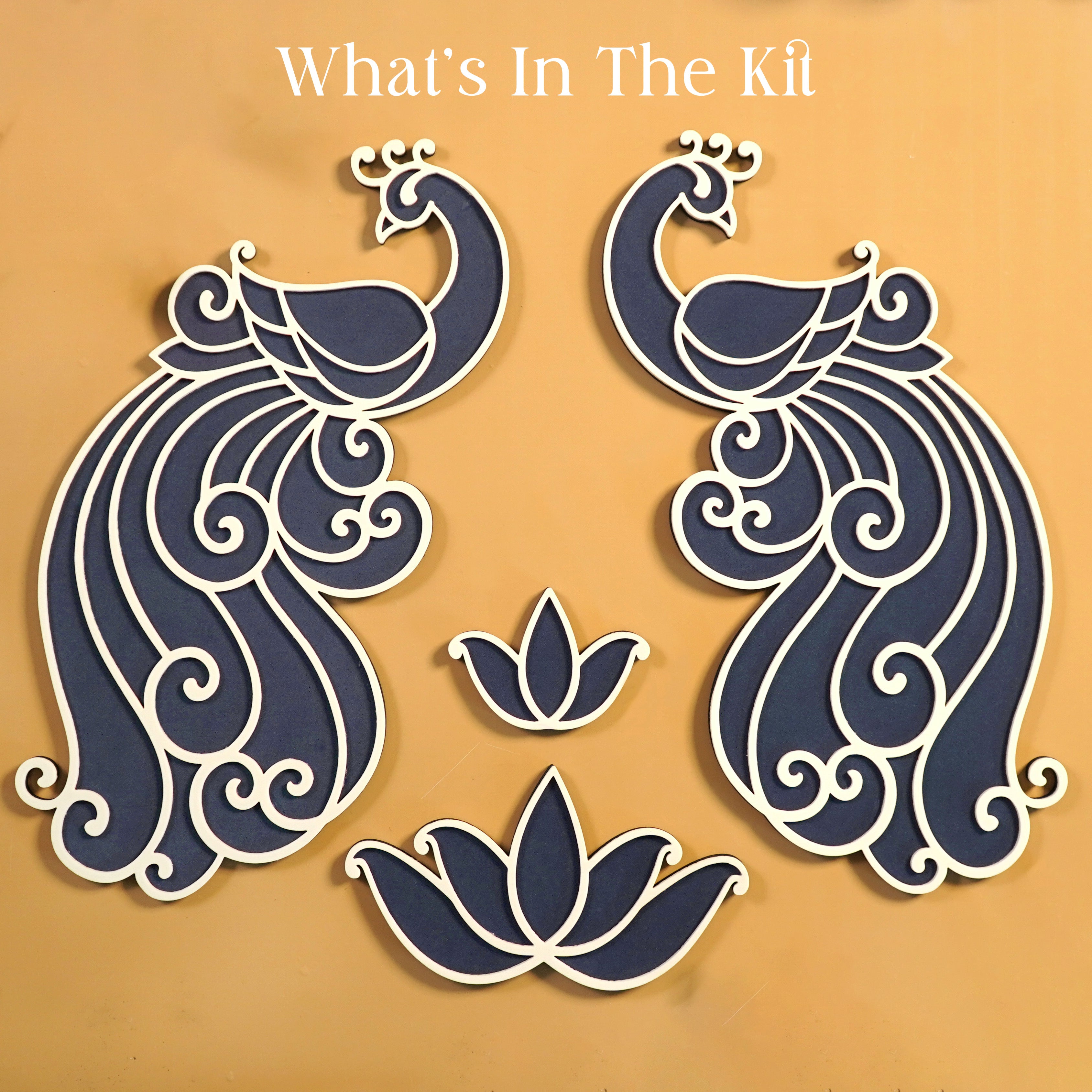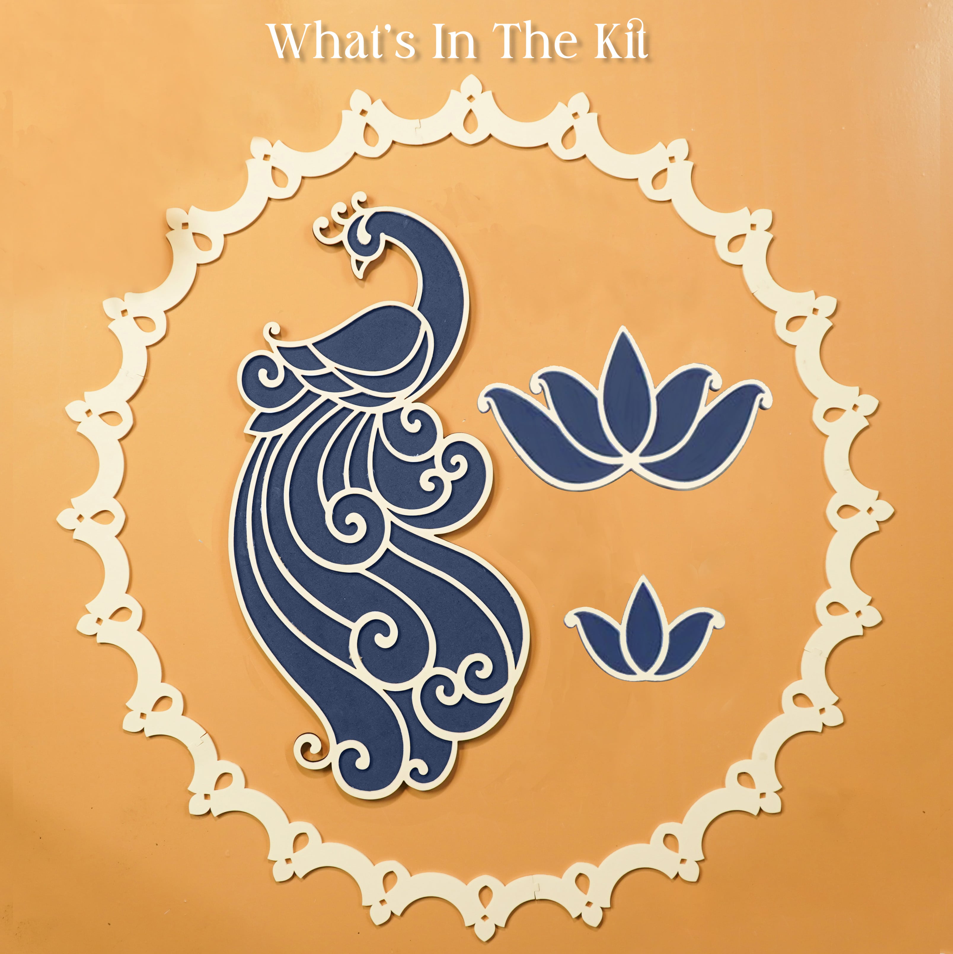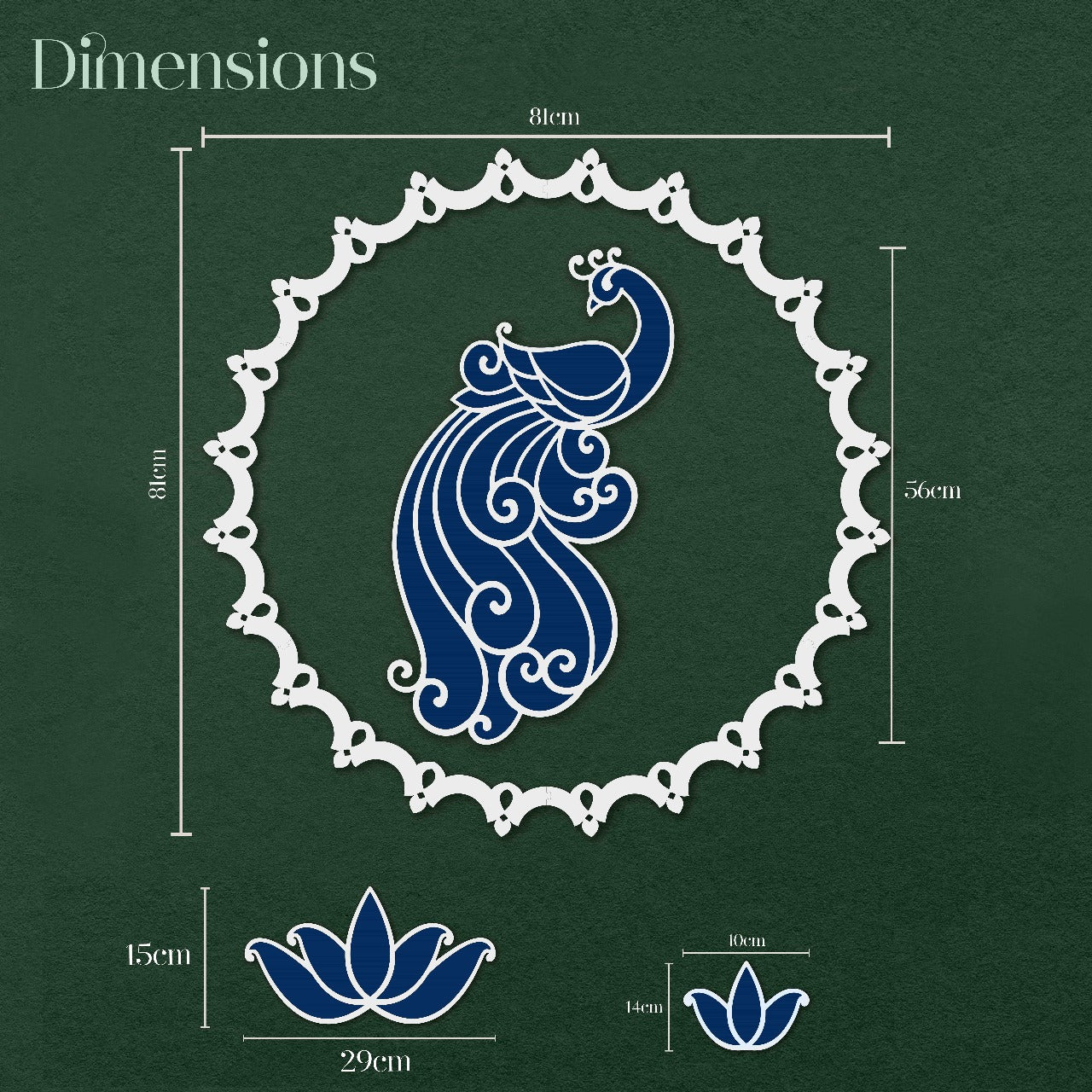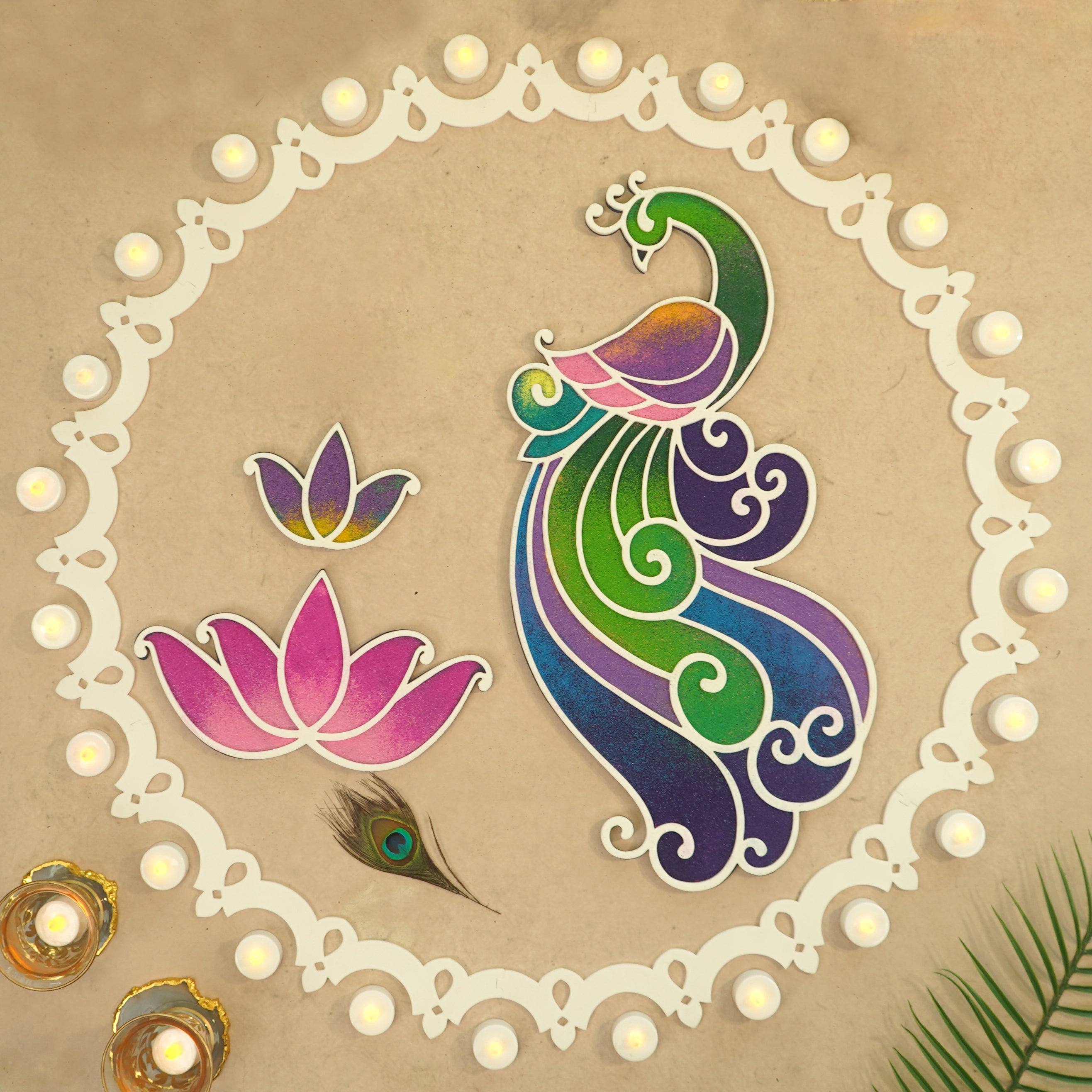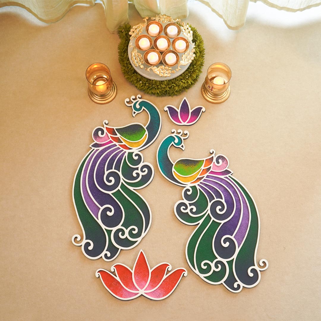 Kundan Mayur Rangoli Template is available in 2 sizes and designs