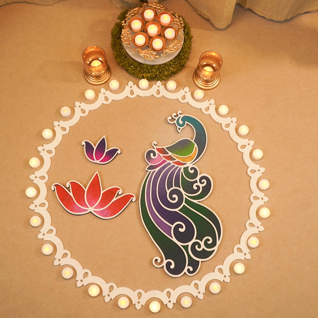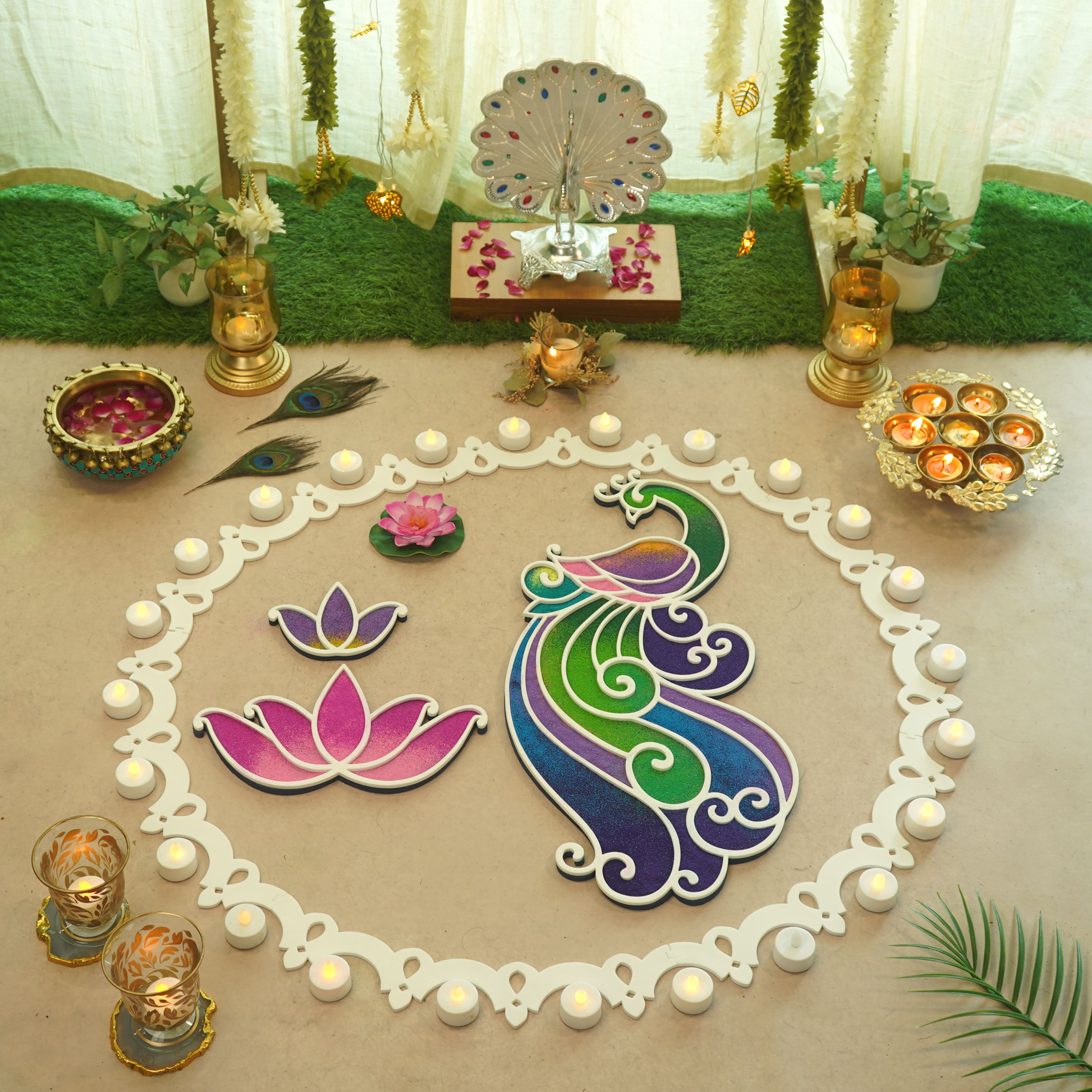 •Welcoming Rangoli – Place it at the entrance to greet guests with warmth and festive vibes.