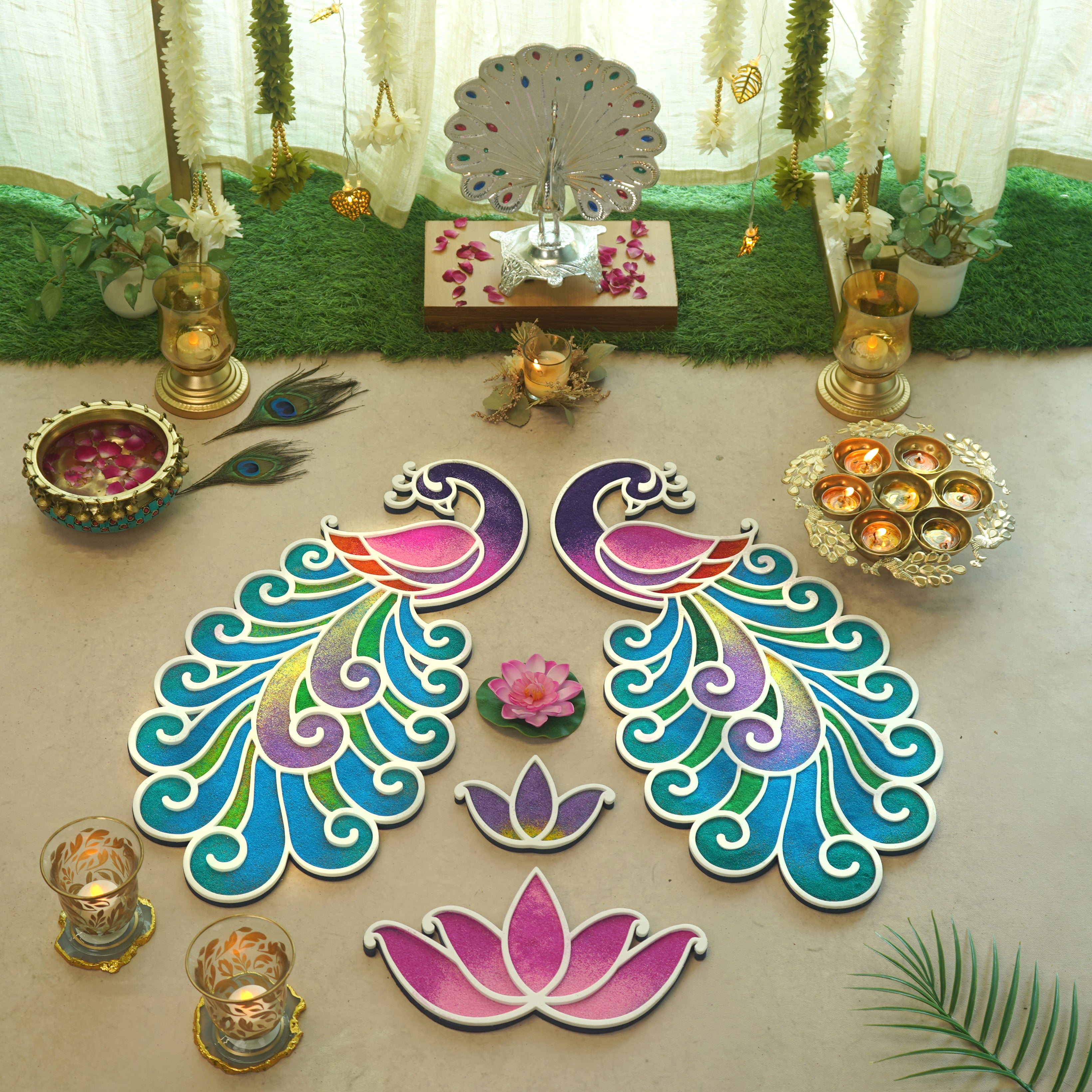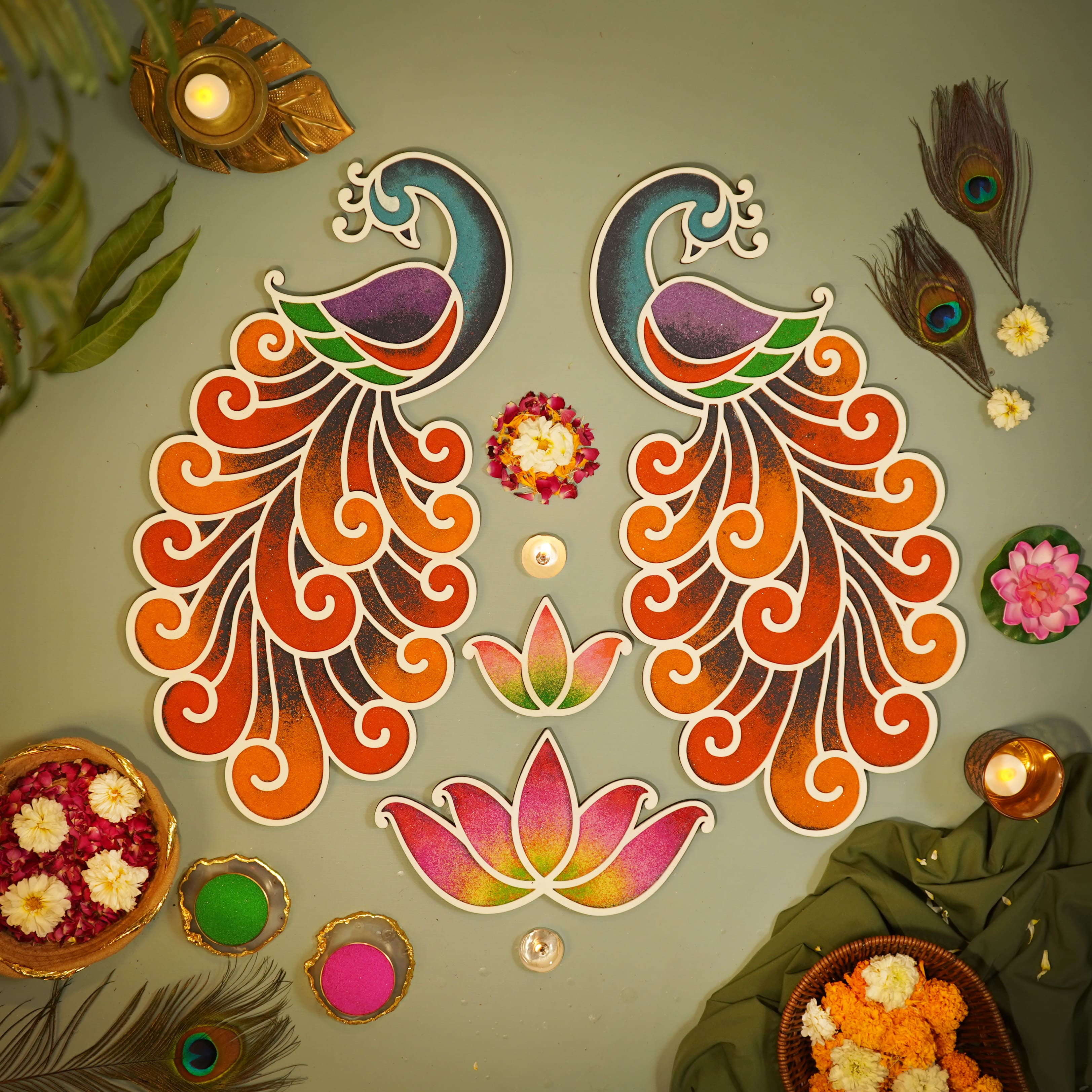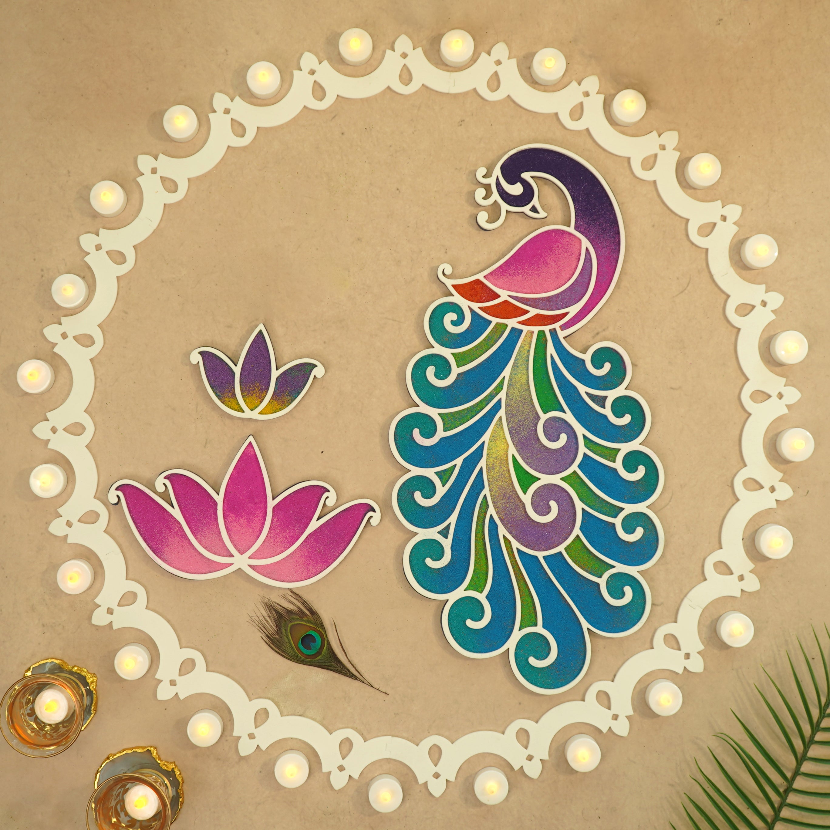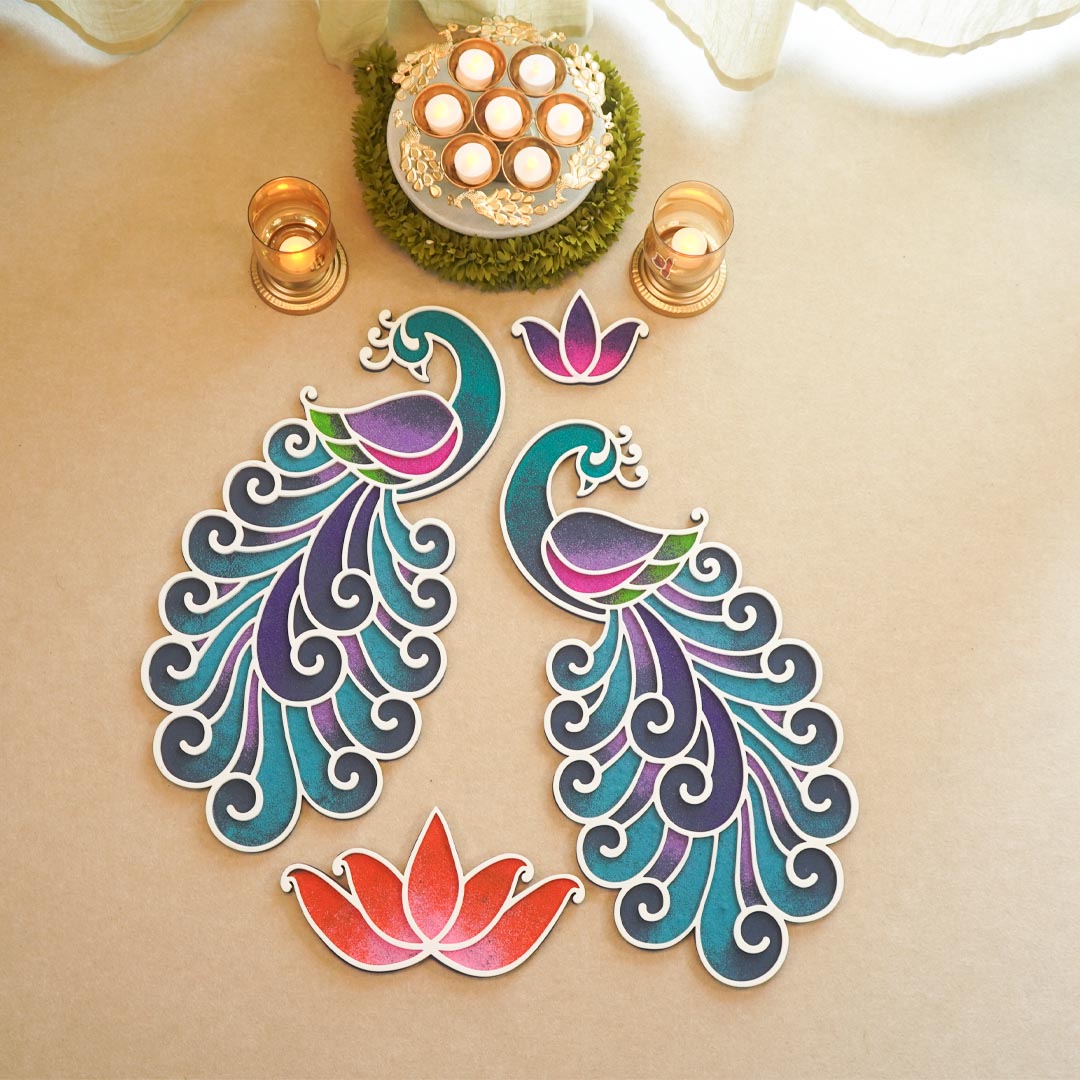 Amber Mayur Rangoli Template is available in 2 sizes and designs