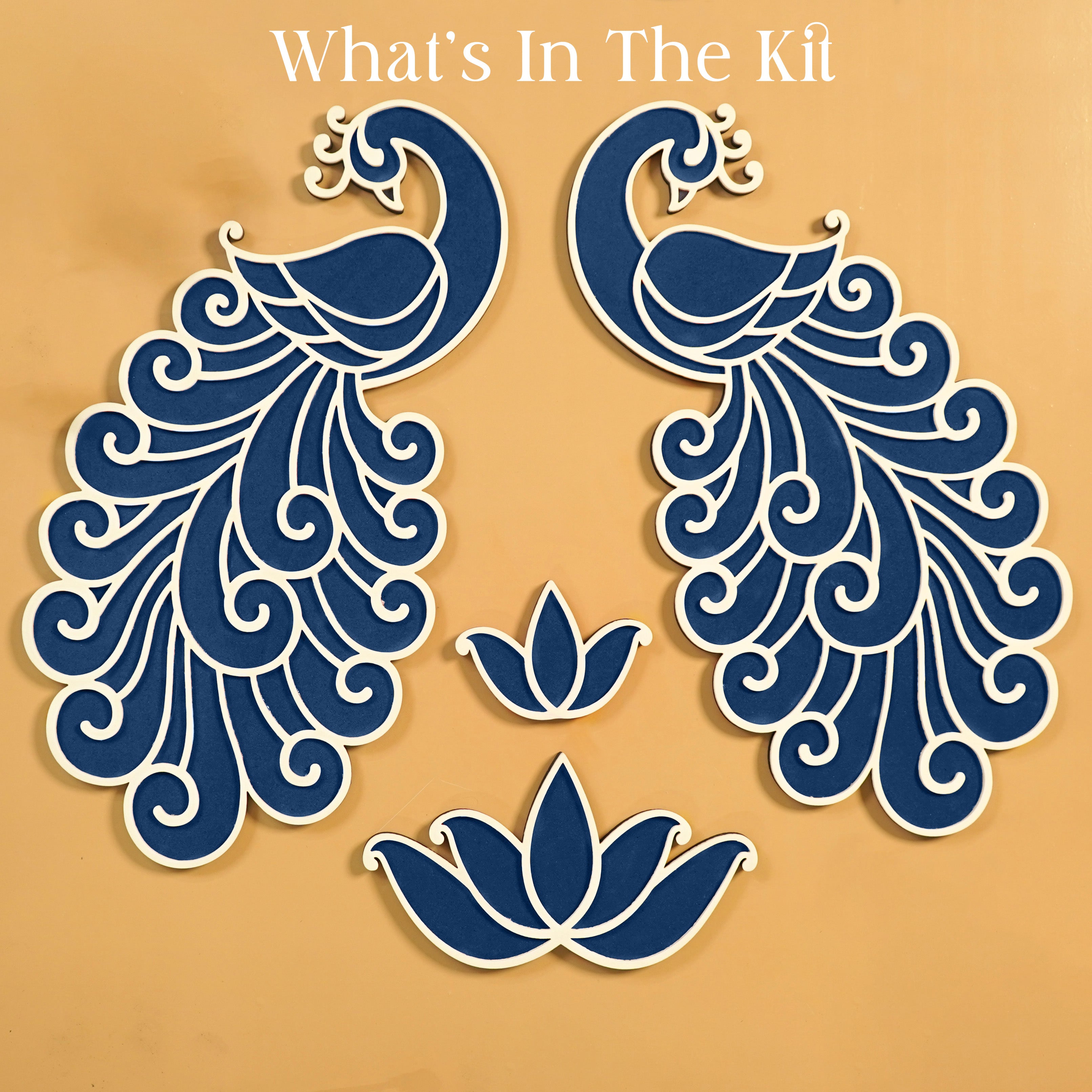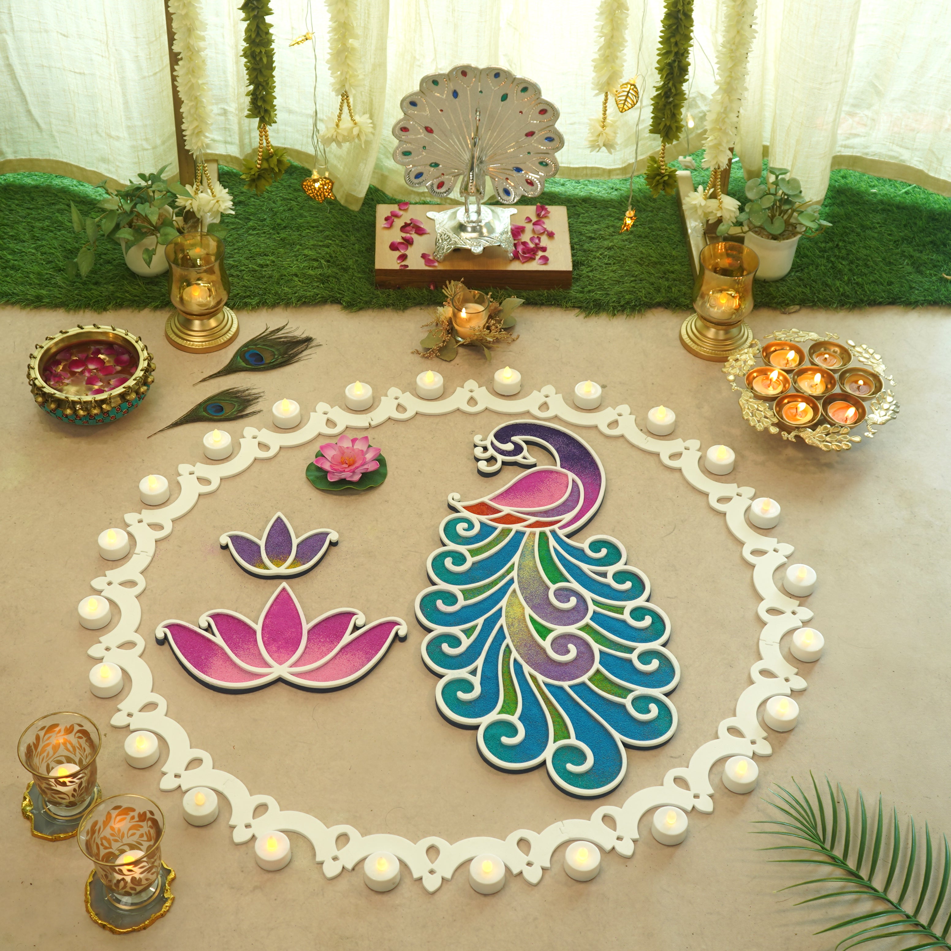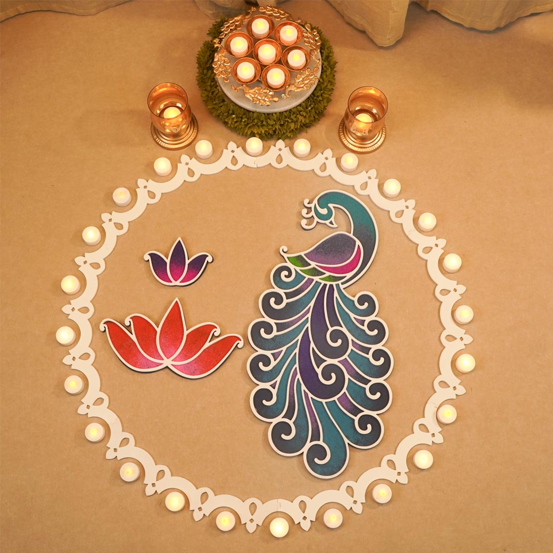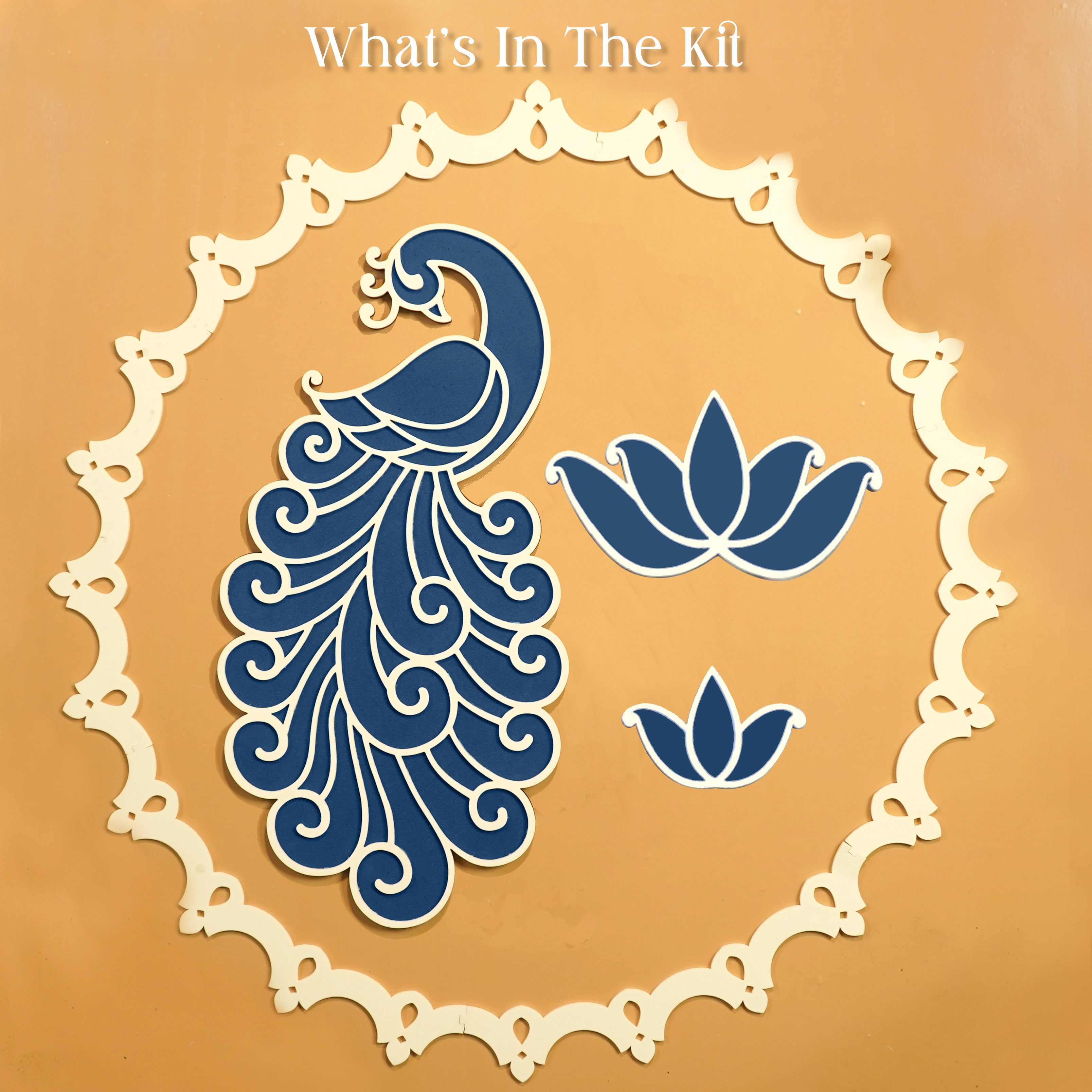 Amber Mayur Rangoli Template is available in 2 sizes and designs