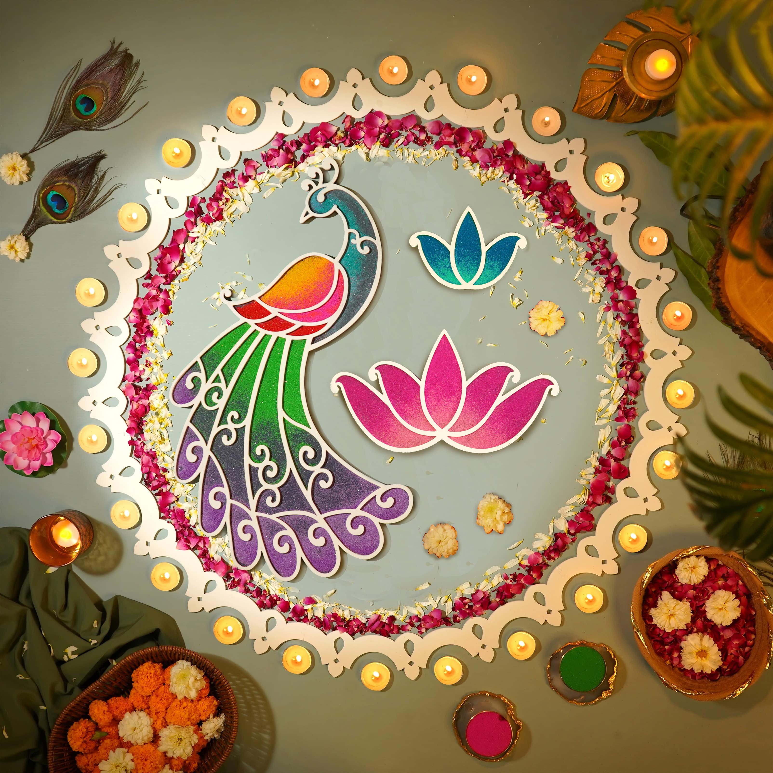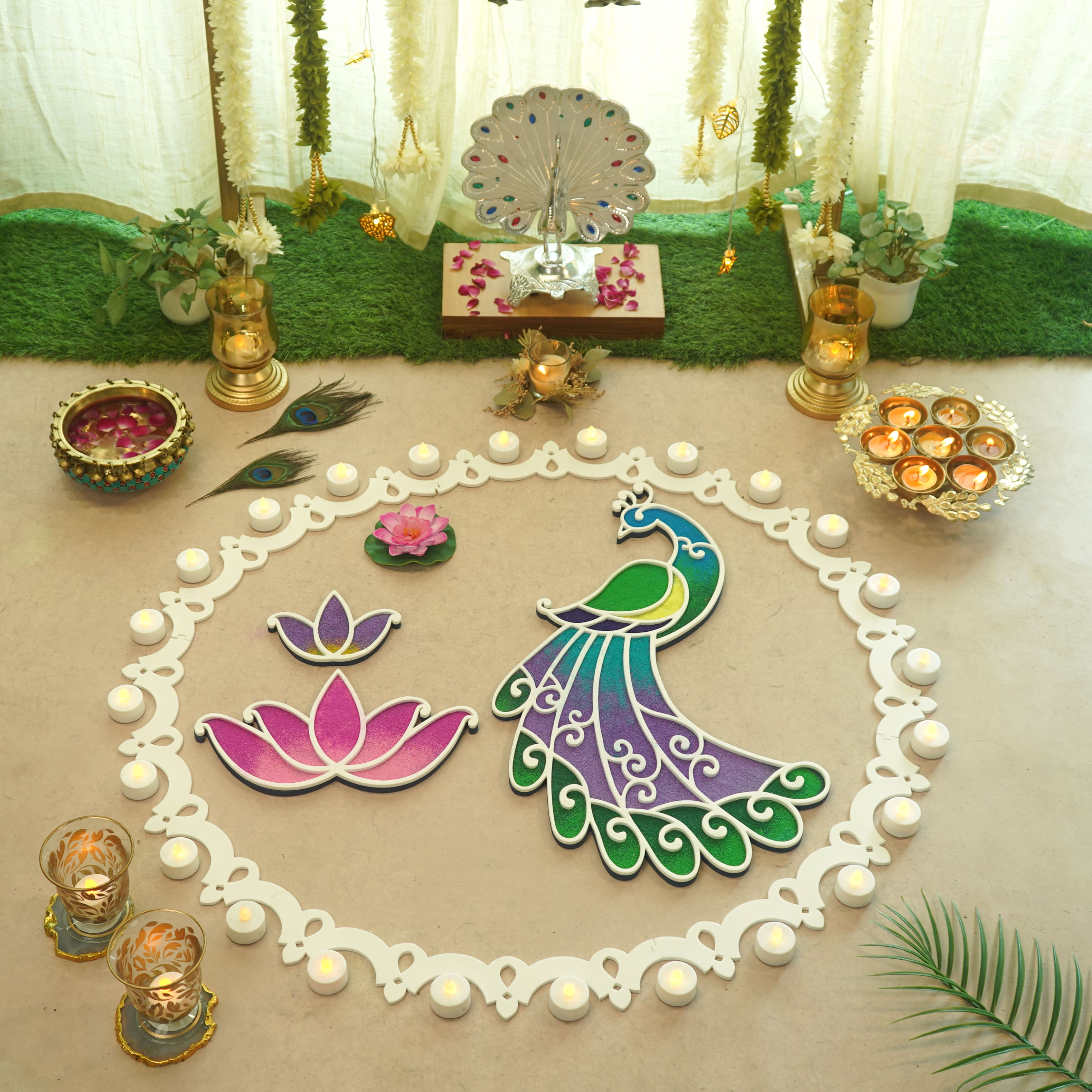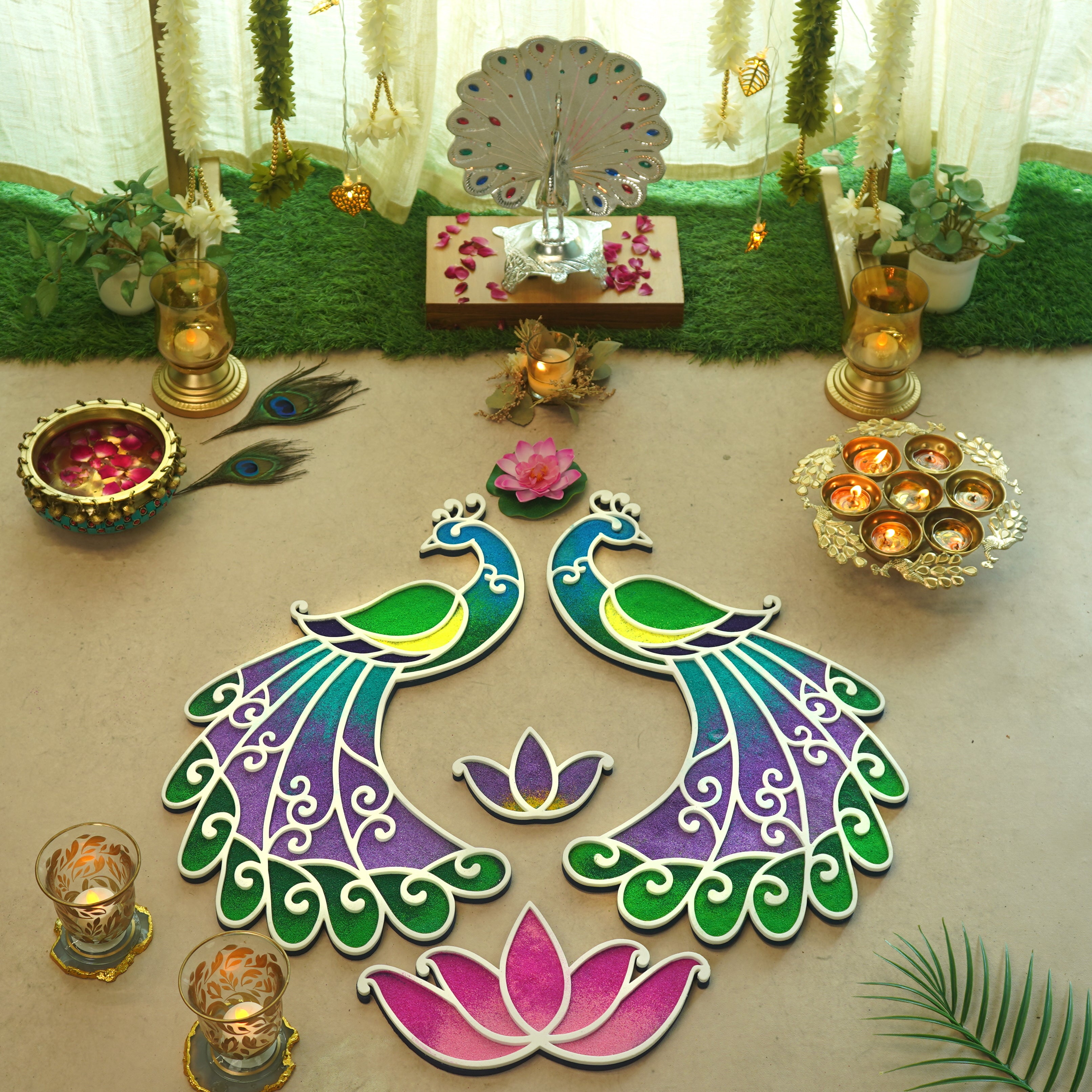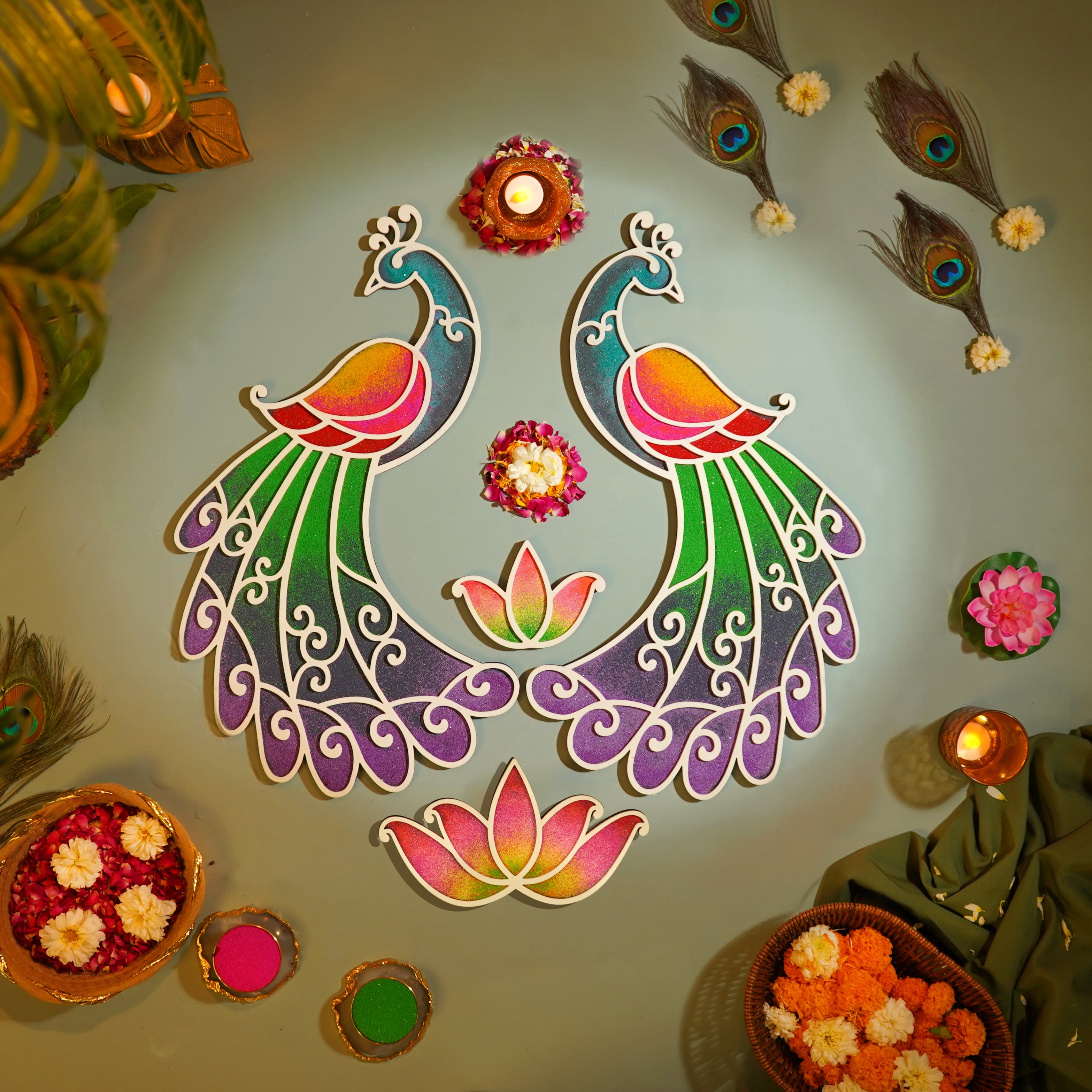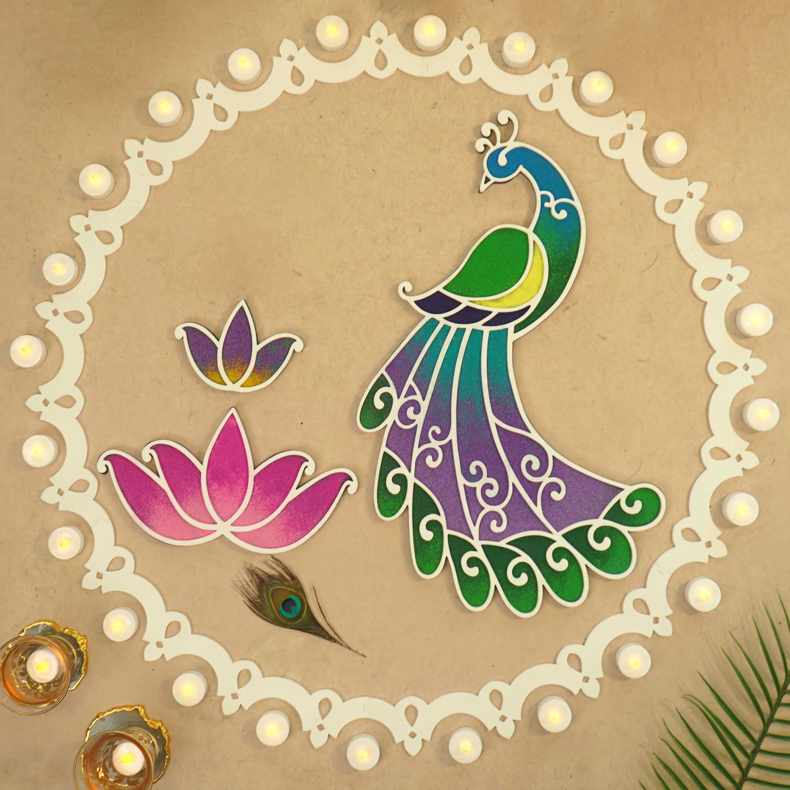 Varn Mayur Rangoli Template is available in 2 sizes and designs