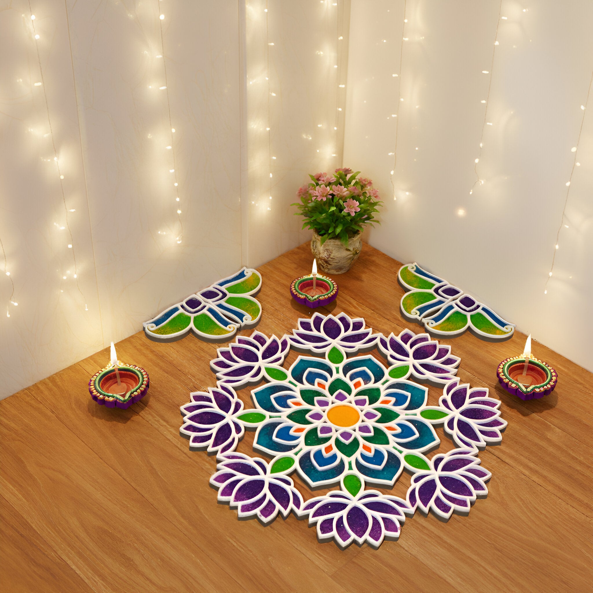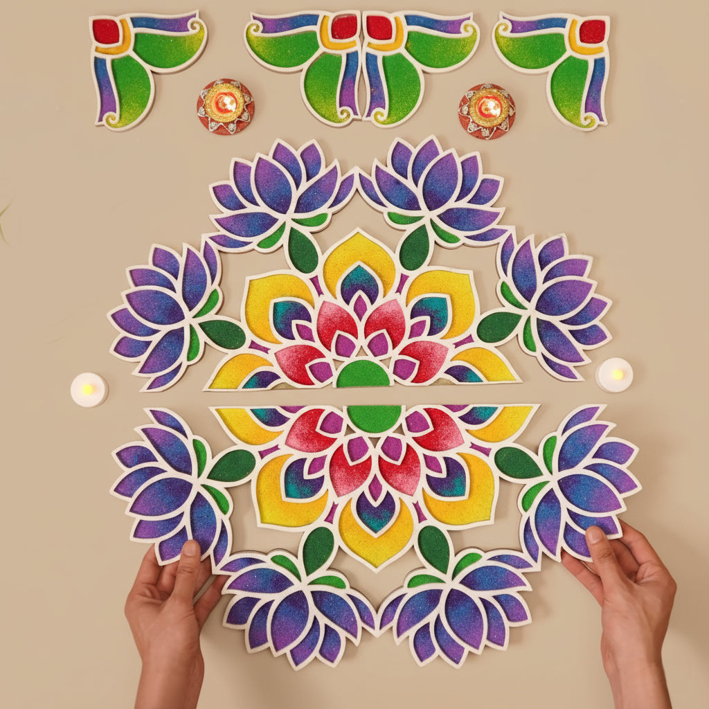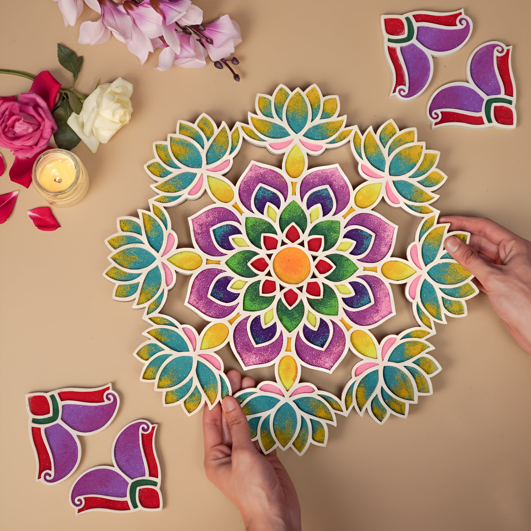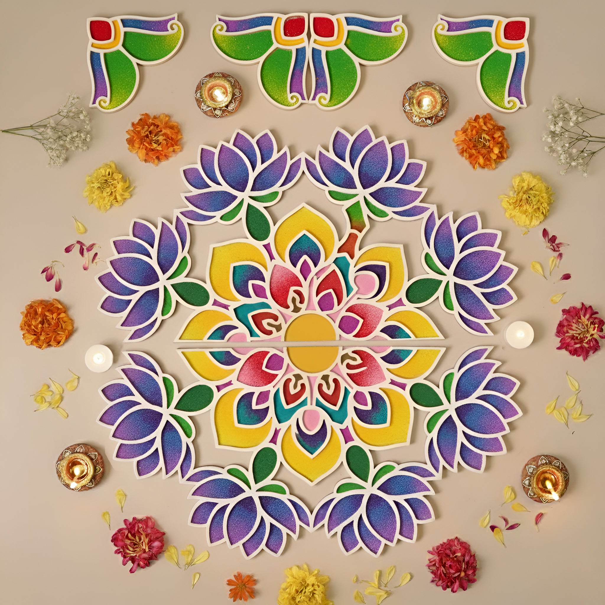 Island Rangoli's artistic Collection 2023 Easy Rangoli Template style is inspired by CROCHET ART. Just as knitting weaves threads into intricate patterns crochet creates stunning loops, this collection embodies the essence of both crafts to bring you a symphony of colors, patterns, and creativity.