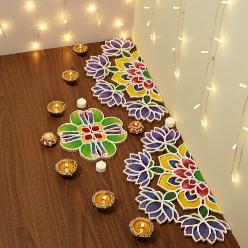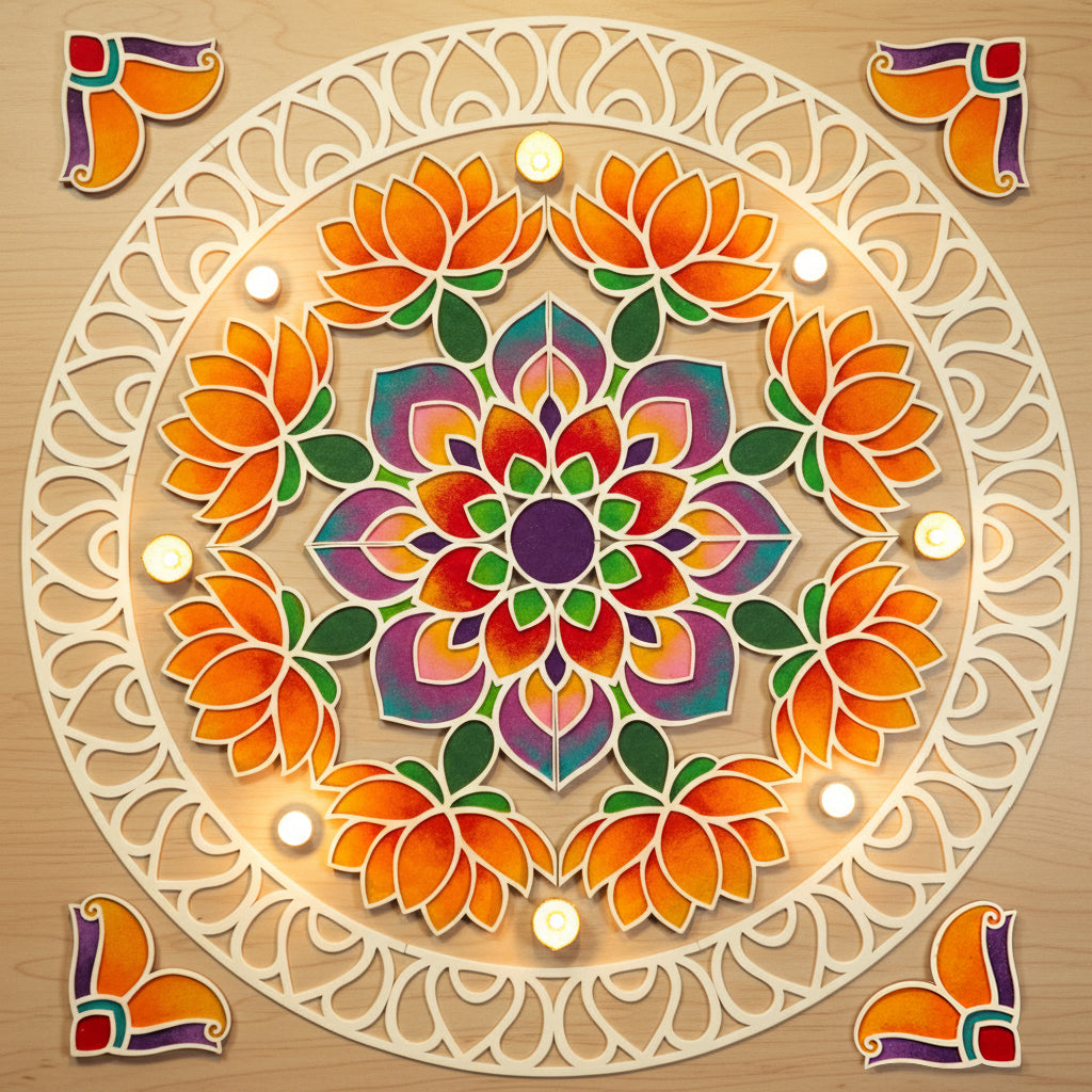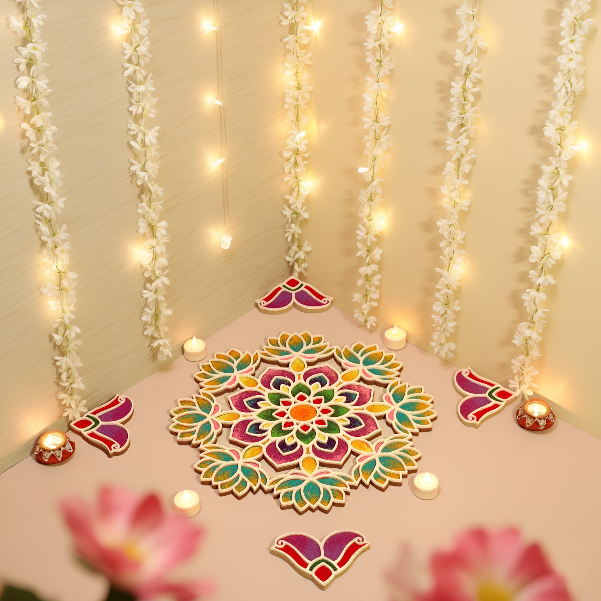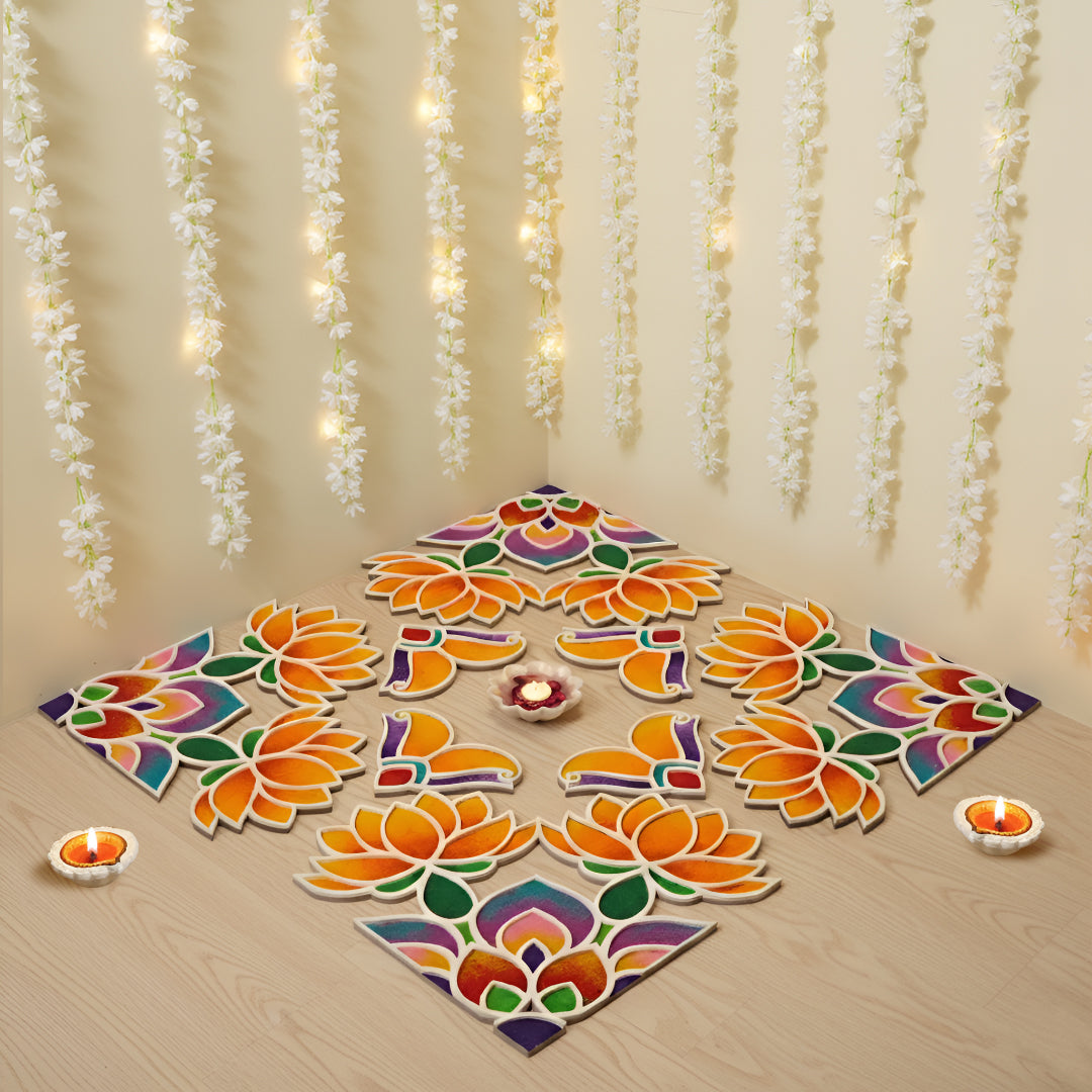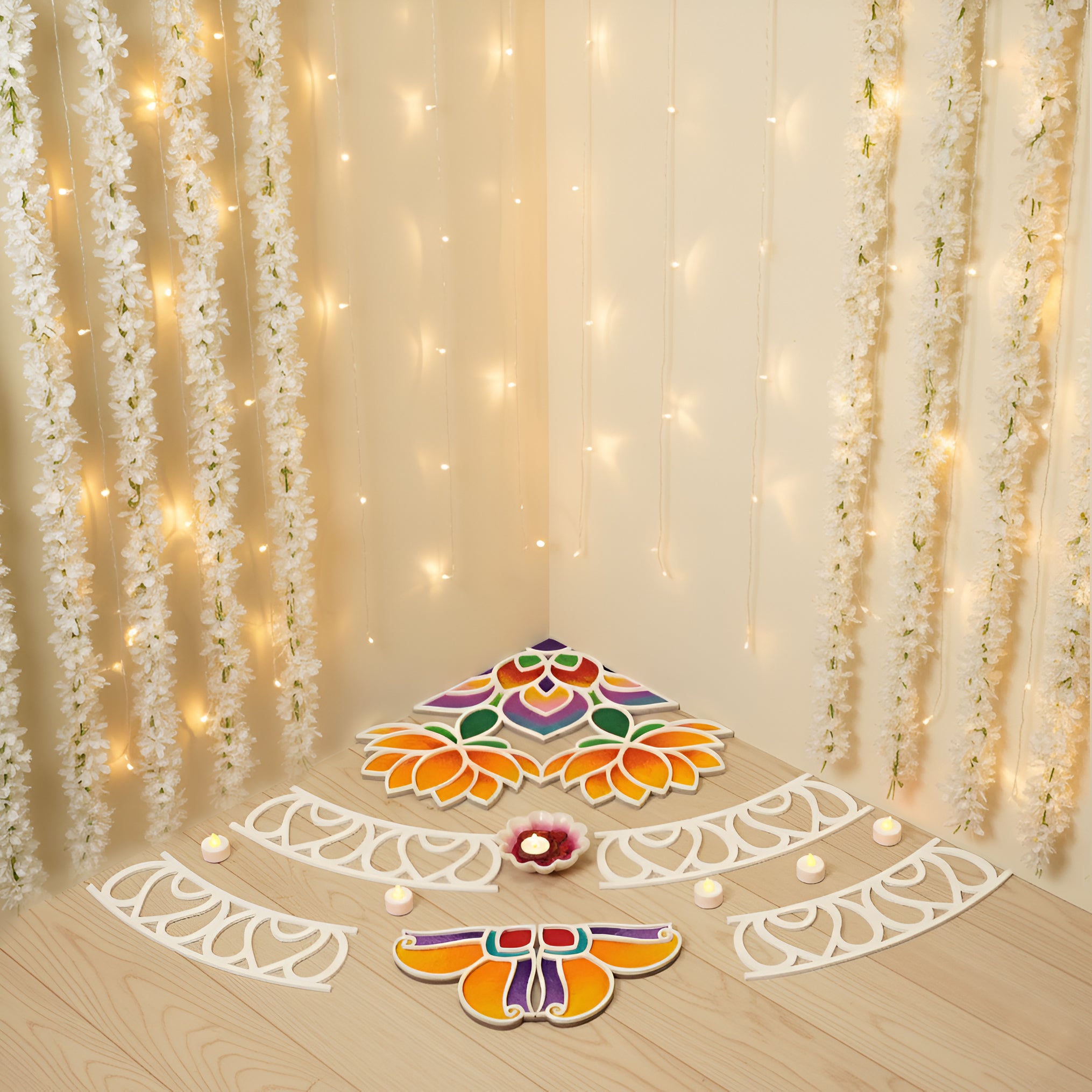 Island Rangoli's artistic Collection 2023 Easy Rangoli Template style is inspired by CROCHET ART. Just as knitting weaves threads into intricate patterns crochet creates stunning loops, this collection embodies the essence of both crafts to bring you a symphony of colors, patterns, and creativity.